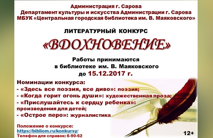 Стартует литературный конкурс «Вдохновение», органимзованный сотрудниками библиотеки. До 15 декабря творческие работы принимаются в здании библиотеки на улице Мира.
