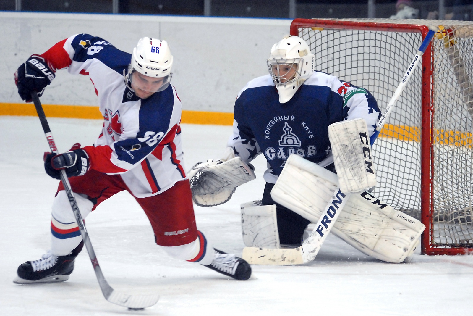 В минувшее воскресенье, 12 ноября, саровчане добились победы в очередном хоккейном противостоянии. Матчем против чеховской «Звезды» наша дружина открыла третью домашнюю серию. Игра против фарм-клуба московского «ЦСКА» получилась зрелищной. Обилие голов и острых моментов определенно понравились саровской публике. Интрига встречи сохранялась до последних секунд третьего периода. В итоге встреча перешла в овертайм, где преуспела команда Игоря Аверкина. 4:3 — в нашу пользу.