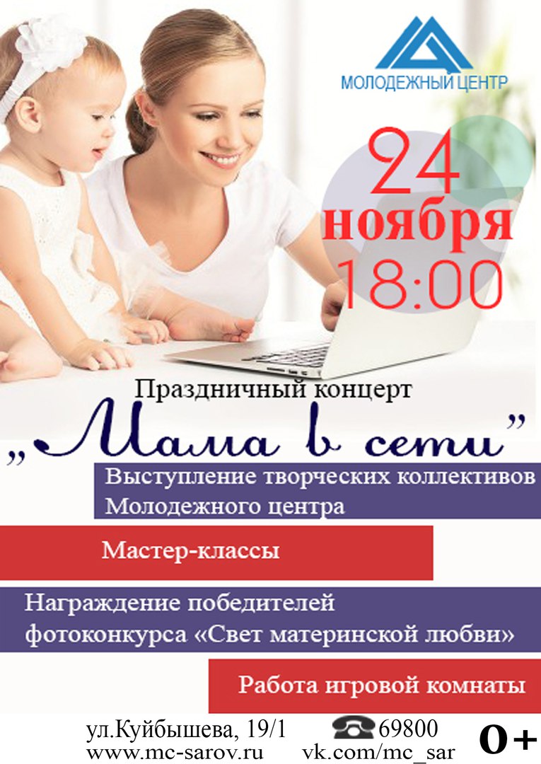 Концерт «Мама в сети» состоится 24 ноября в Молодежном центре