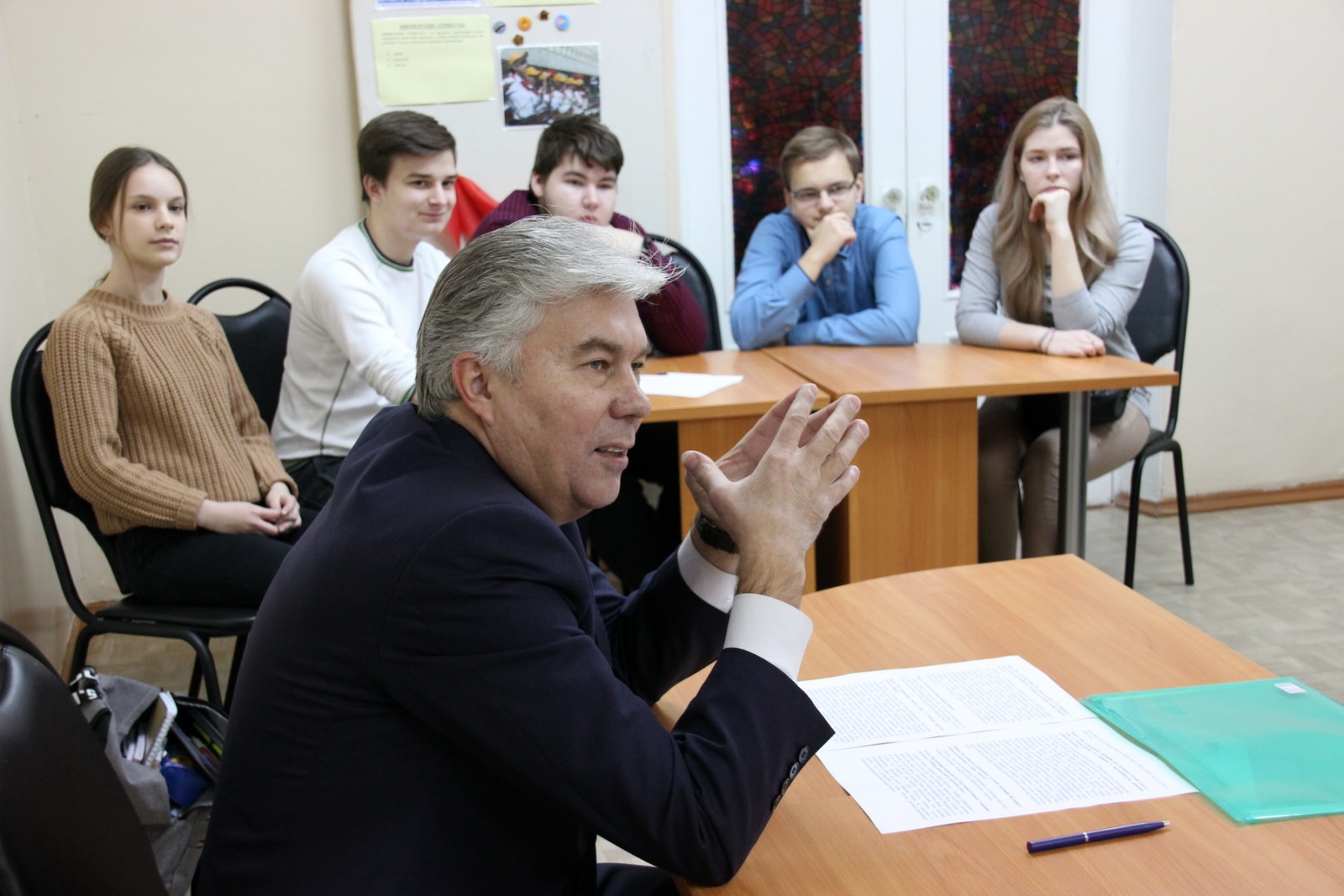 Тема занятия 15 декабря — «Политические силы. Политический портрет Сарова. Человек в политике: черты характера, отличительные особенности». На встречу пришли 22 представителя молодежных организаций лицея № 3, школы №№ 5, 7, 10, 11, 12, 13, 16, 17 и школы-интерната № 1. Несколько активистов детской палаты «Галактика» тоже изъявили желания послушать серьезные разговоры старшеклассников и главы города.