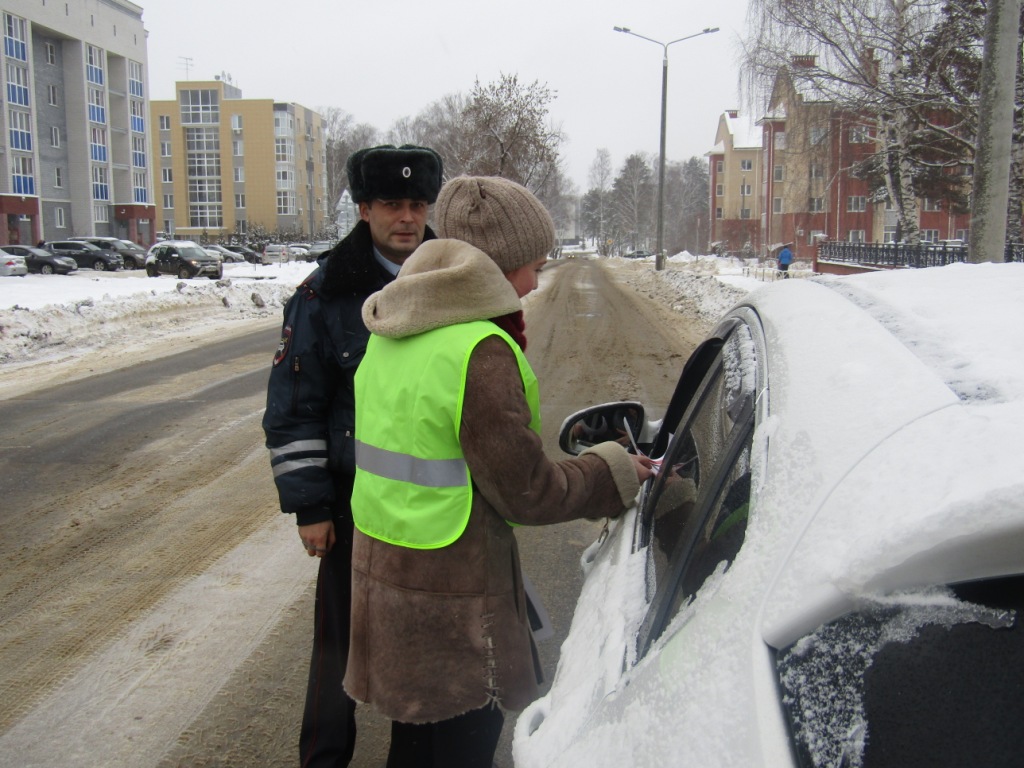Автоинспекторы совместно с учащимися МБОУ «Школа № 11» провели акцию, в ходе которой напомнили водителям о необходимости установки зимней авторезины и подарили наклейки «Шипы».