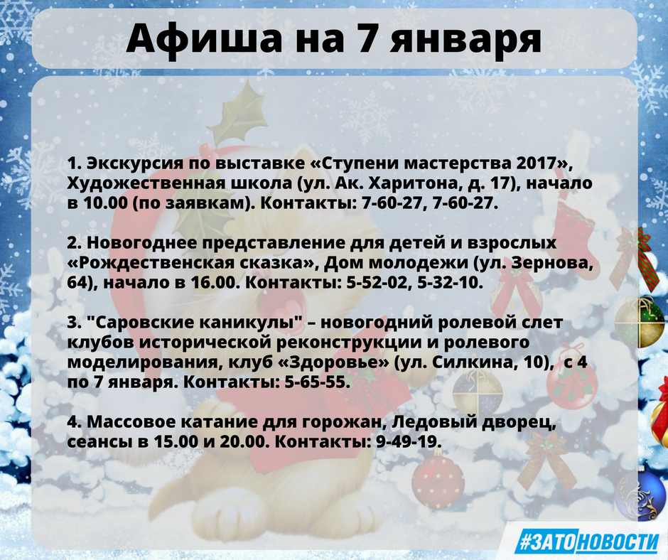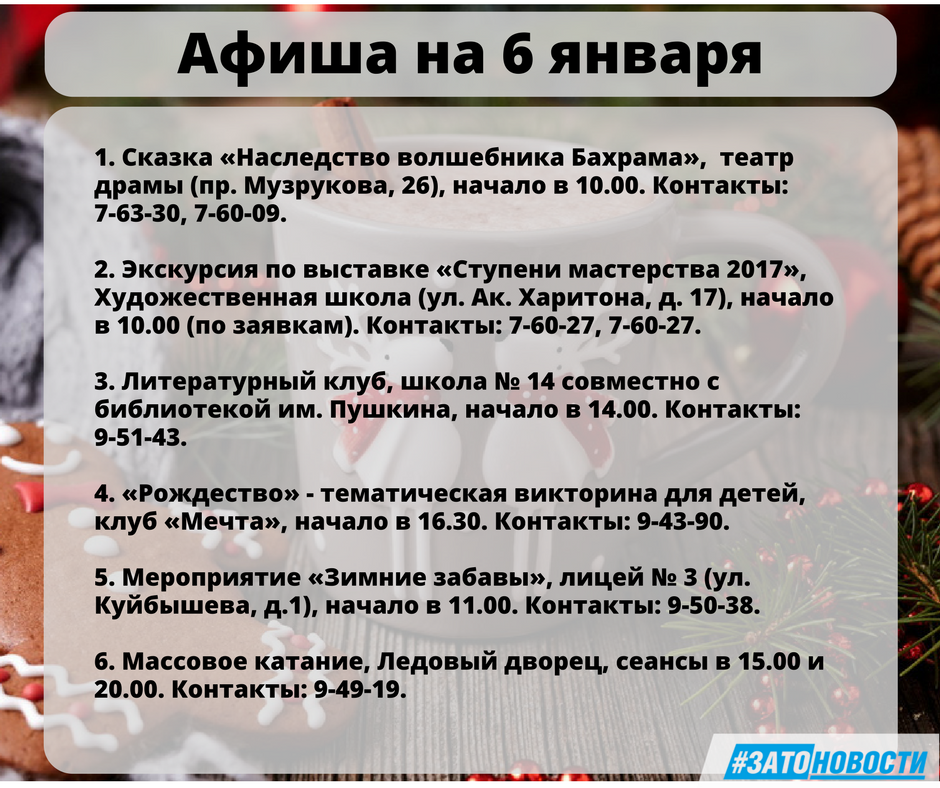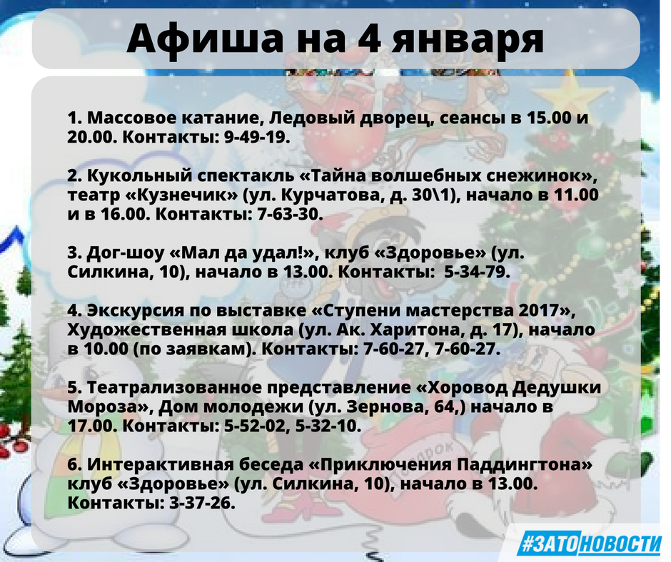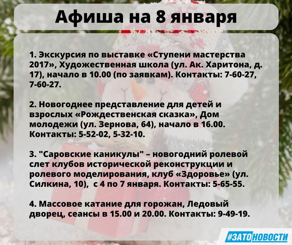 Афиша с 4 по 8 января 2018 г.