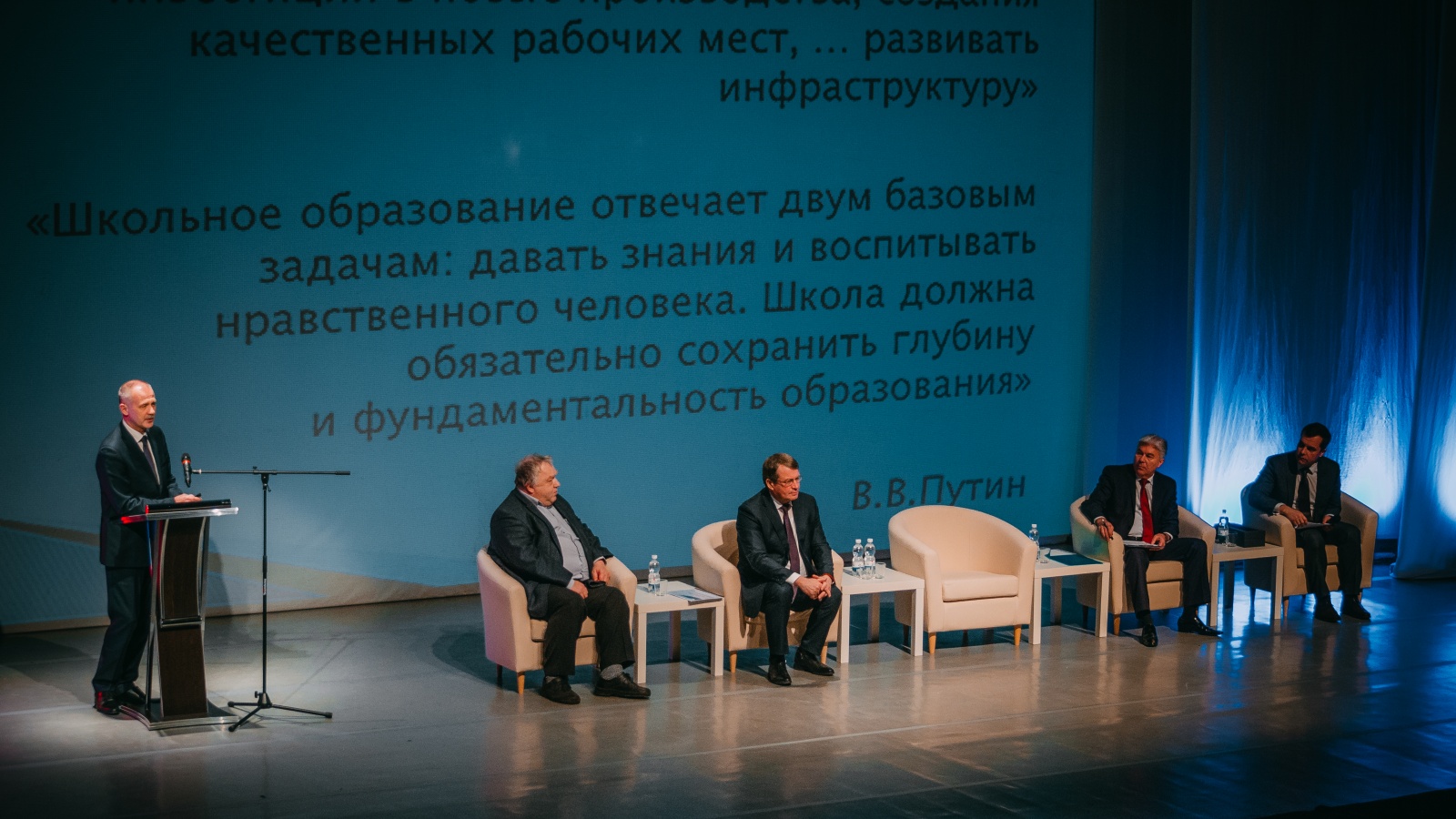 С докладами перед публикой выступили глава администрации Сарова Алексей Голубев, директор Ядерного центра Валентин Костюков, глава города Александр Тихонов и руководитель КБ-50 Сергей Оков.