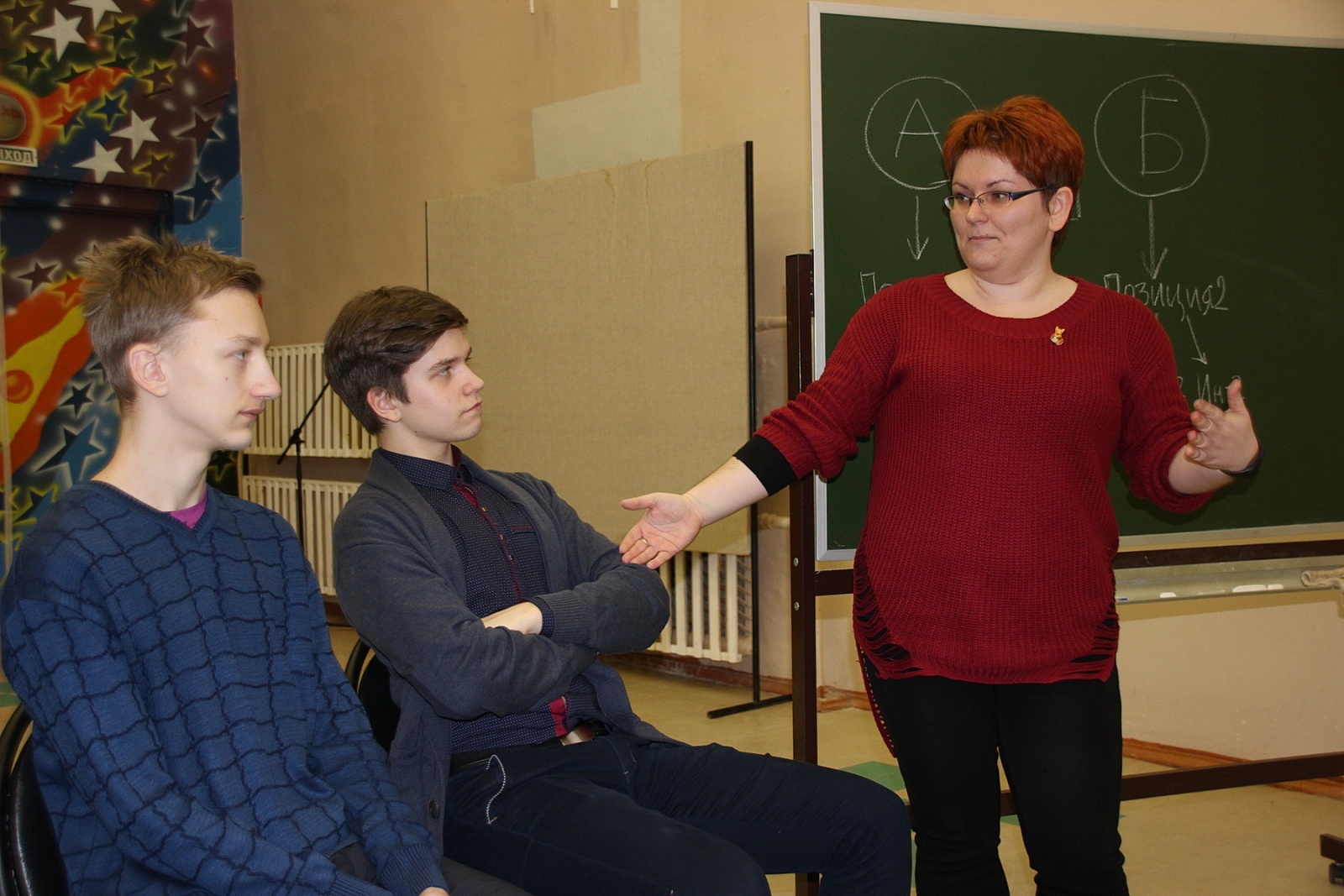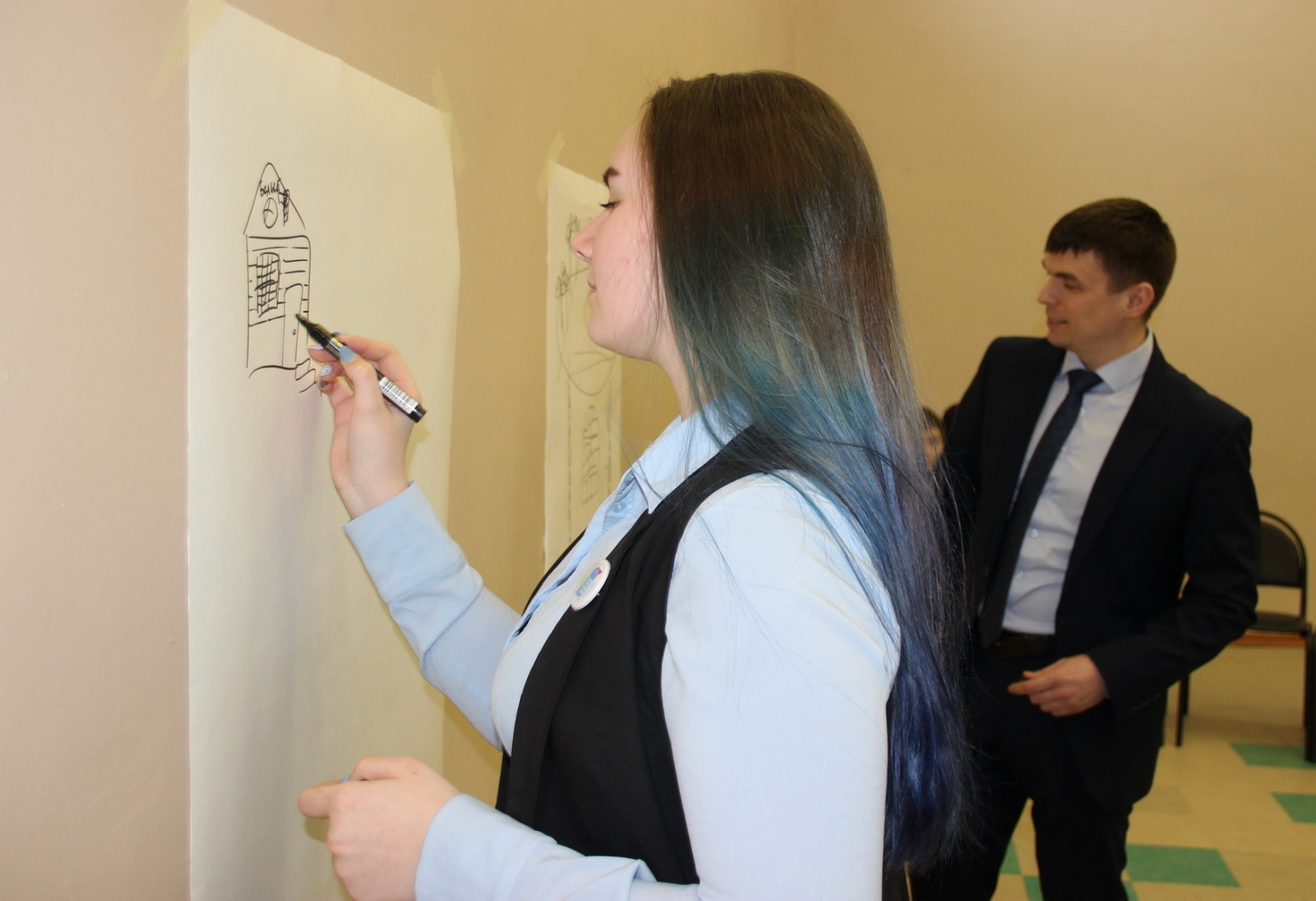 Тема конфликтов весьма актуальна для 15−17-летних парней и девушек, поэтому на занятии чередовались теория и практика. Одним из заданий, которые выполняли Антон Ульянов и лицеистка Марина Брагина, было нарисовать дом, слушая указания ведущего. При этом каждое последующее предложение отменяло предыдущее. На вопрос, комфортно ли было работать, ответы оказались неожиданными. «Это привычно, потому что в жизни постоянно возникают новые вводные, задачи меняются, и надо быстро адаптироваться», — пояснил Антон Сергеевич. — «Мне нравится, когда всё время что-то меняется. Это мой стиль», — улыбнулась Марина.