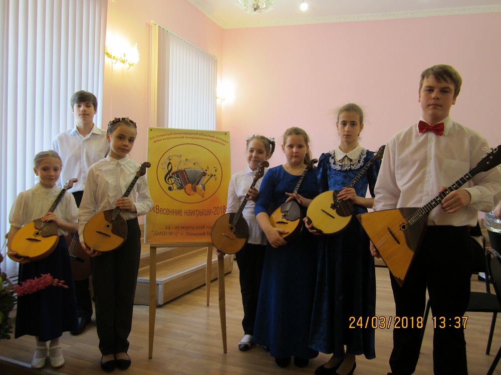22−24 марта в городе Нижний Новгород прошёл областной конкурс учащихся-исполнителей на струнных народных инструментах «Весенние наигрыши». Среди участников были музыканты, играющие на домре, балалайке, а также ансамбли русских народных инструментов.