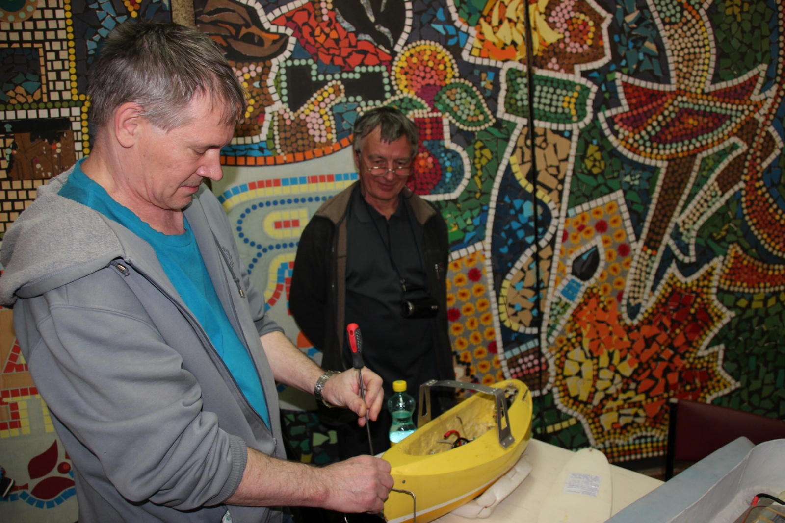 Как обычно, соревнования проходили в два тура: стендовая оценка и ходовые испытания. Все победители на стенде — воспитанники Юрия Михайловича: Дмитрий Шапошников (колесные пароходы), Александр Широких (гражданские суда), Всеволод Данченко (подводные лодки) и Константин Богданов (военные корабли).