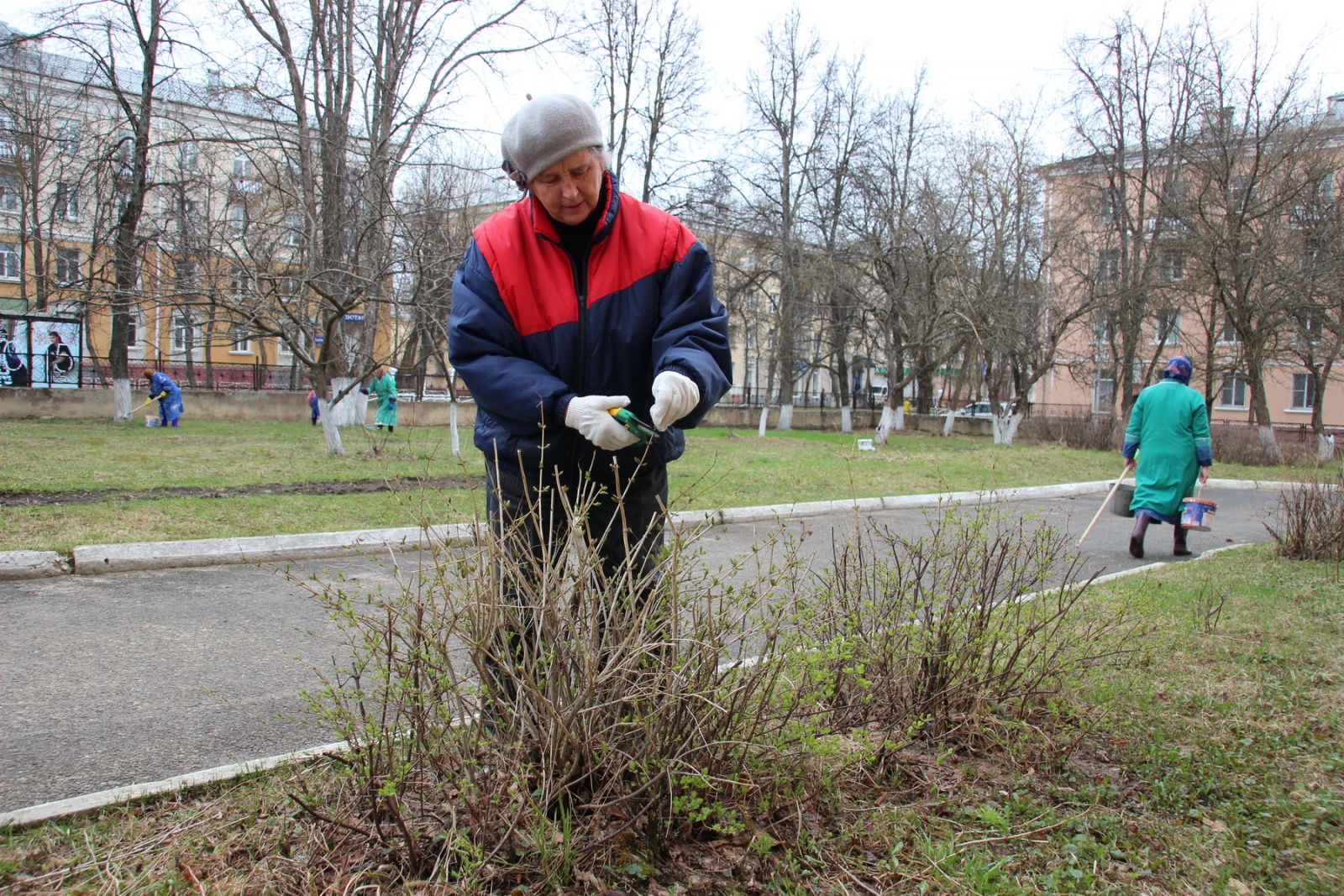 За несколько часов заметно посвежели газоны, очищенные от прошлогодней травы и листьев, забелели стволы деревьев, наряднее стали территория вокруг танка ИС-2 и фасад здания, покрашенный после ремонта цоколя.
