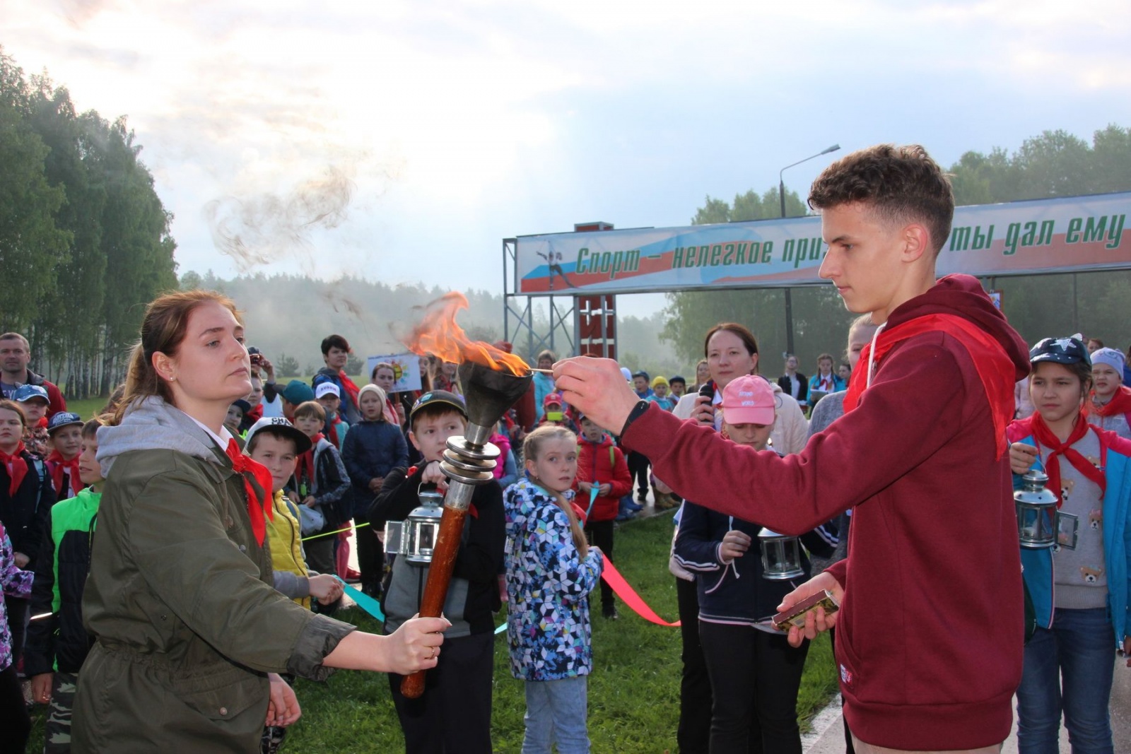 Праздник, посвященный Дню пионерии, проходит на Лыжной базе уже четверть века. Прежде кульминацией был большой костер. Теперь традиционные элементы — это визитки-рассказы о каждой дружине, полет в небо связки шаров с бумажными журавликами-пожеланиями и песни в орлятском кругу вместе с педагогом Дворца детского творчества Юрием Царевым. Также в первой части программы — посвящение в Союз детских организаций «Сияющие звезды». На этот раз ритуал провели с помощью лучиков-лент и символического зажигания свечей-фонариков. Огонь от факела, горящего в руках председателя СДО Екатерины Маркеловой, передавал председатель детской палаты «Галактика» Артем Белавин.