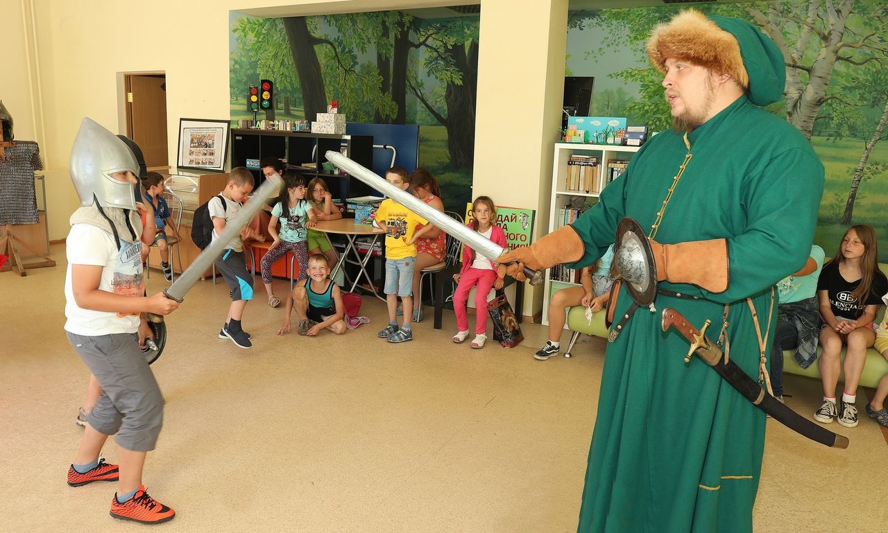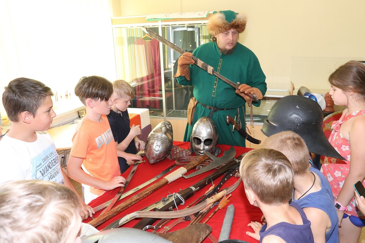 На экскурсию в «АРМИР» воспитанники Дворца детского творчества приходят не впервые. Если в прошлом году ребята из «Искорки» увидели кузницу, костюмы Средневековья и попробовали стрелять из лука, то на этот раз самым запоминающимся действием стала битва на мечах и залпы из мушкета. Истории про русских богатырей рассказал руководитель клуба Василий Киселев. Он же показал, как ловчее держать меч, как наносить удары, и даже некоторым девочкам удалось ощутить себя в роли защитника Отечества.