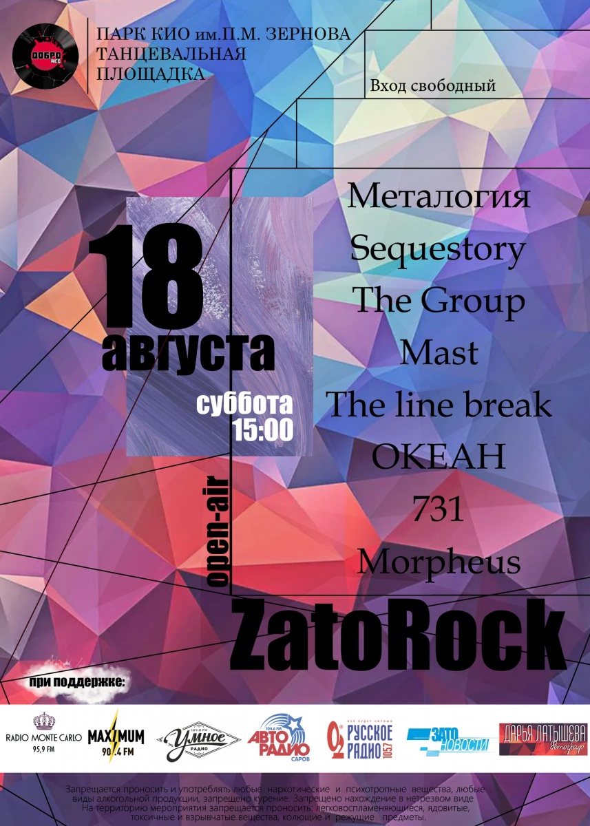 Напоминаем, что в субботу 18-го в парке пройдёт рок-фестиваль «ZatoRock»