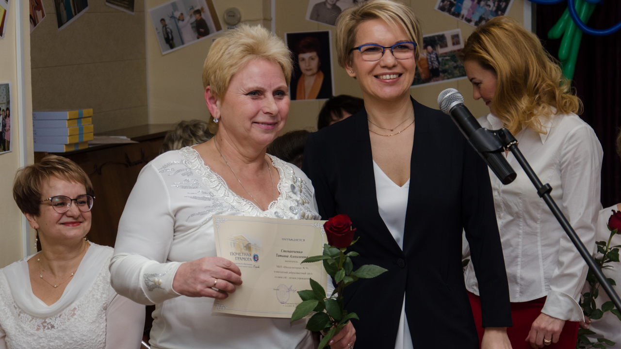 Глава городской администрации вручил почетные грамоты врачу-педиатру Наталье Горбуновой, учителю Елене Лисиной и главному бухгалтеру Оксане Шуваловой. Руководитель департамента образования передала директору школы-интерната Ольге Ворониной сертификат на приобретение интерактивной песочницы.