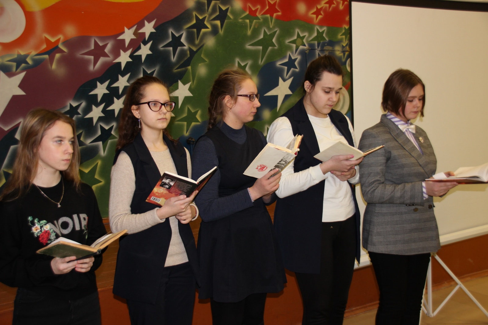 В рамках проекта «Читаем вслух» восьмиклассники декламировали «Опаленных войной»