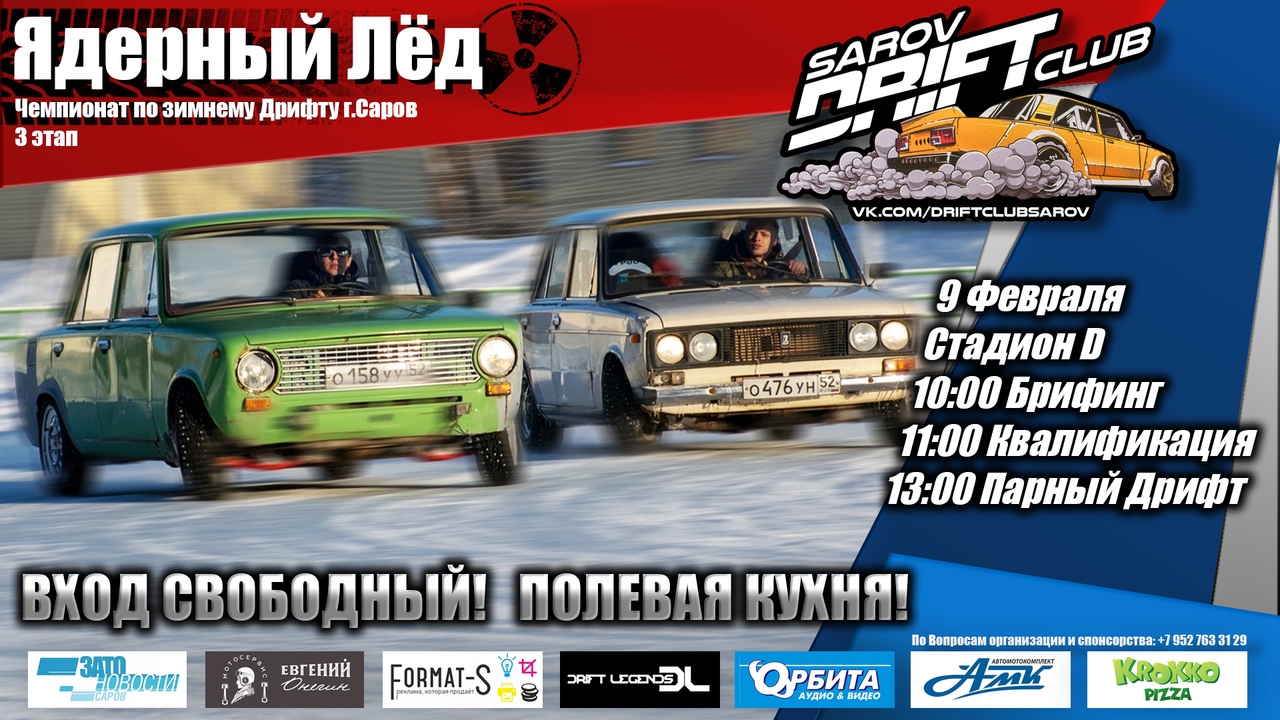 Клуб проводит 3 этап регулярного чемпионата города по дрифту на льду.