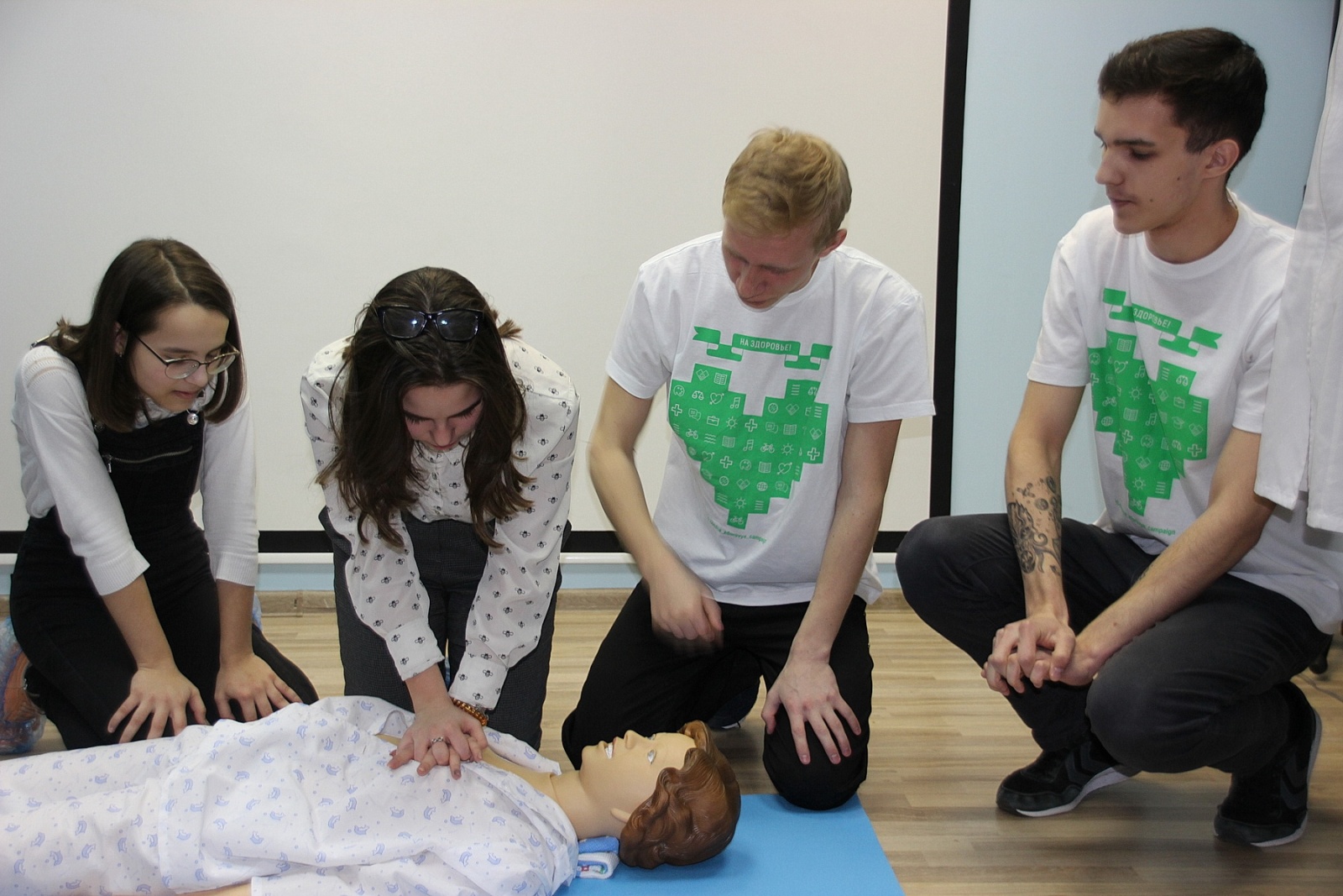 Заместитель директора по учебной работе Лариса Дорожкина рассказала об условиях приема и программе обучения, показала оснащение кабинетов, где ребята постигают азы сестринского дела, делают инъекции и массаж, пеленают кукол, запоминают строение скелета и мышечного каркаса тела. А вы знаете, как оказать первую помощь человеку, который вдруг потерял сознание? Ответ на этот вопрос был практическим: студенты четвертого курса Андрей Егоров, Евгений Загурский и преподаватели колледжа провели мастер-класс сердечно-легочной реанимации.
