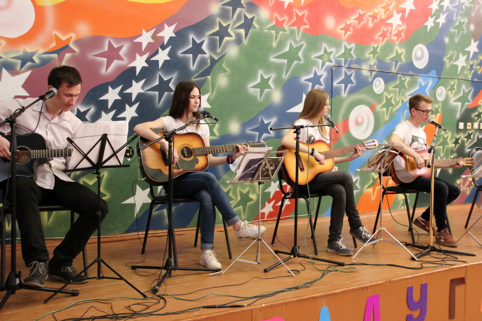 Во Дворце детского (юношеского) творчества продолжается цикл отчетных концертов. 26 апреля перед зрителями выступили воспитанники Юрия Царева из объединения гитарной песни «Радуга».