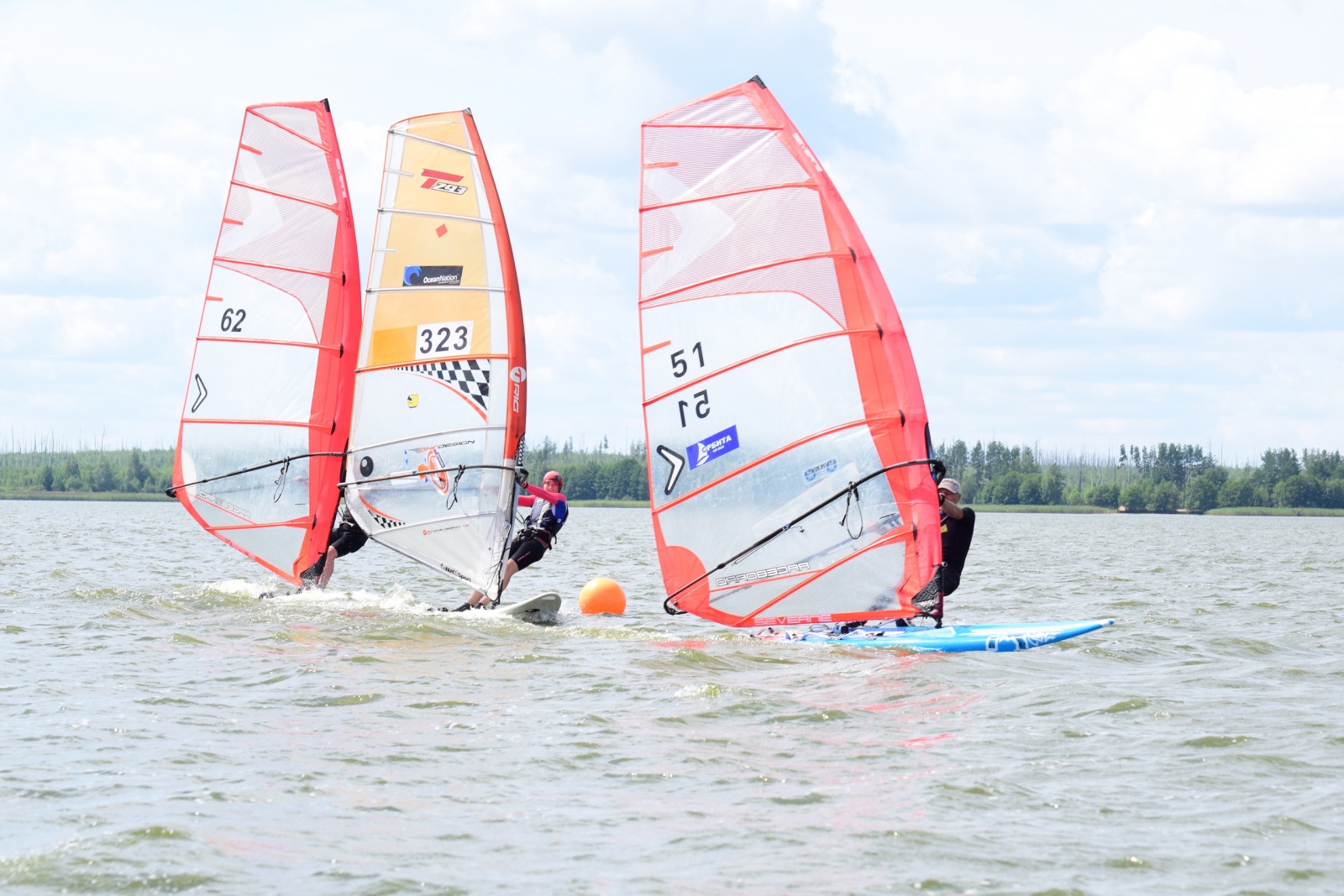 За третье место в общем зачете соперничали Владимир Пашарин и юная Екатерина Ивина. В воскресенье в их спор вмешался Максим Седов. Но изменить ситуацию коренным образом он не мог, так как в субботу пропустил много гонок из-за разрыва паруса. Необходимо заметить, что Катя выступала на доске BIG TECHNO 293 с парусом площадью 7,8 м. Тогда как Владимир гонялся на Шкипере длиной 370 см с парусом 9,5 м. То есть Владимир имел преимущество, выступая на более скоростной матчасти. Катя могла ему противостоять лишь при усилениях ветра, когда появлялись условия для глиссирования на полных курсах. Тем не менее она создавала Владимиру достойную конкуренцию и даже вышла на 3 место по итогам первого дня соревнований. Во второй день соревнований очень хорошо гонялся Максим Седов, саровчанин, ныне работающий и живущий в Нижнем Новгороде. Он выступал на доске длиной 320 см с парусом 8.5 м. Но, как мы уже отметили, пропущенные в первый день гонки принесли ему немало штрафных очков. По результатам двух гоночных дней 3 место завоевал Владимир Пашарин. Четвертое место досталось Екатерине Ивиной. Пятым стал Максим Седов. Екатерина Ивина завоевала первое место среди женщин и в классе досок до 320 см.