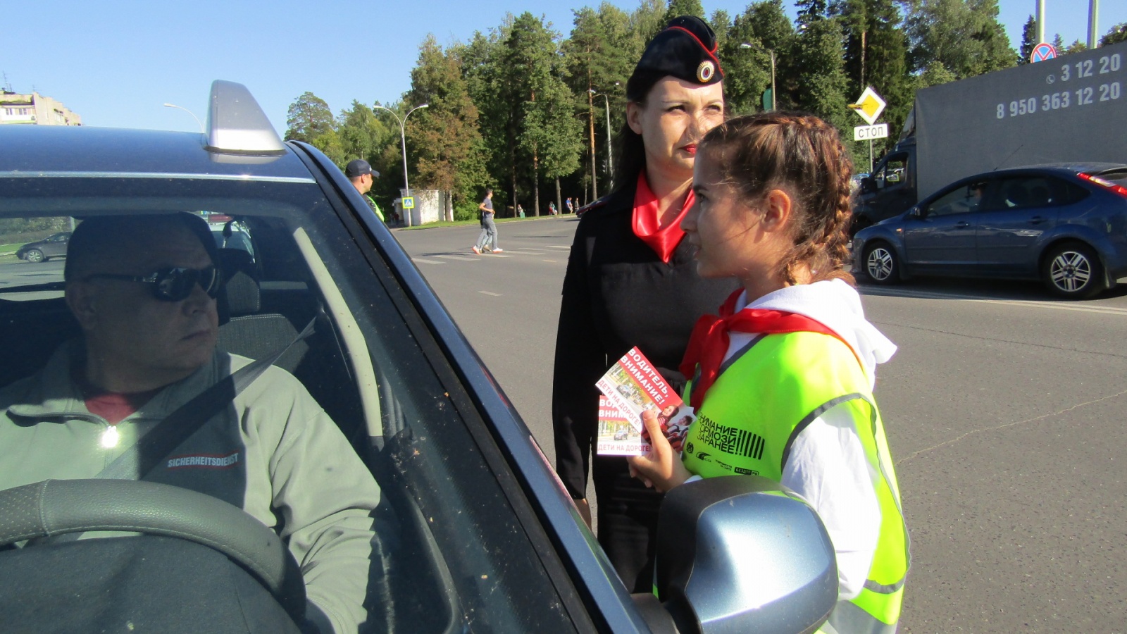 В завершении мероприятия сотрудники Госавтоинспекции помогали останавливать проезжающие машины, а дети раздавали водителям буклеты — напоминание «Водитель, внимание! Дети на дороге!».
