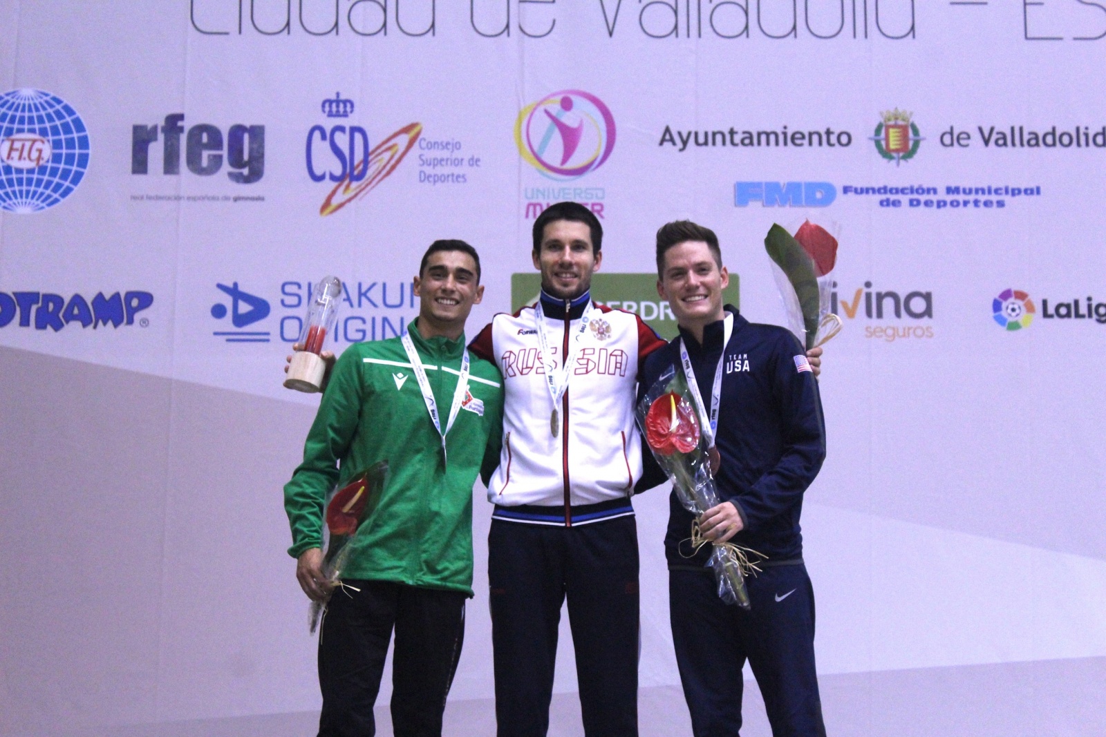 Михаил Заломин одержал победу на этапе Кубка мира по прыжкам на батуте, акробатической дорожке и двойном минитрампе