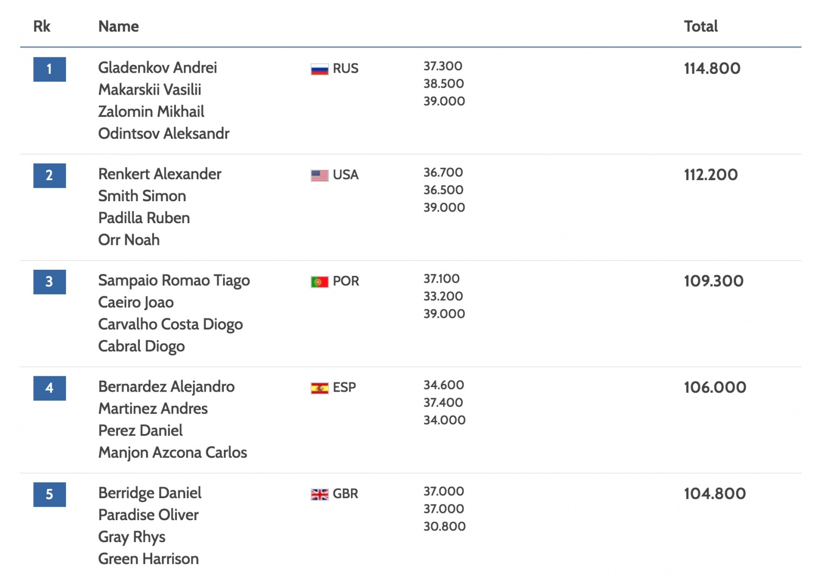 Мужская сборная по прыжкам на двойном минитрампе взяла командное золото чемпионата мира в Токио