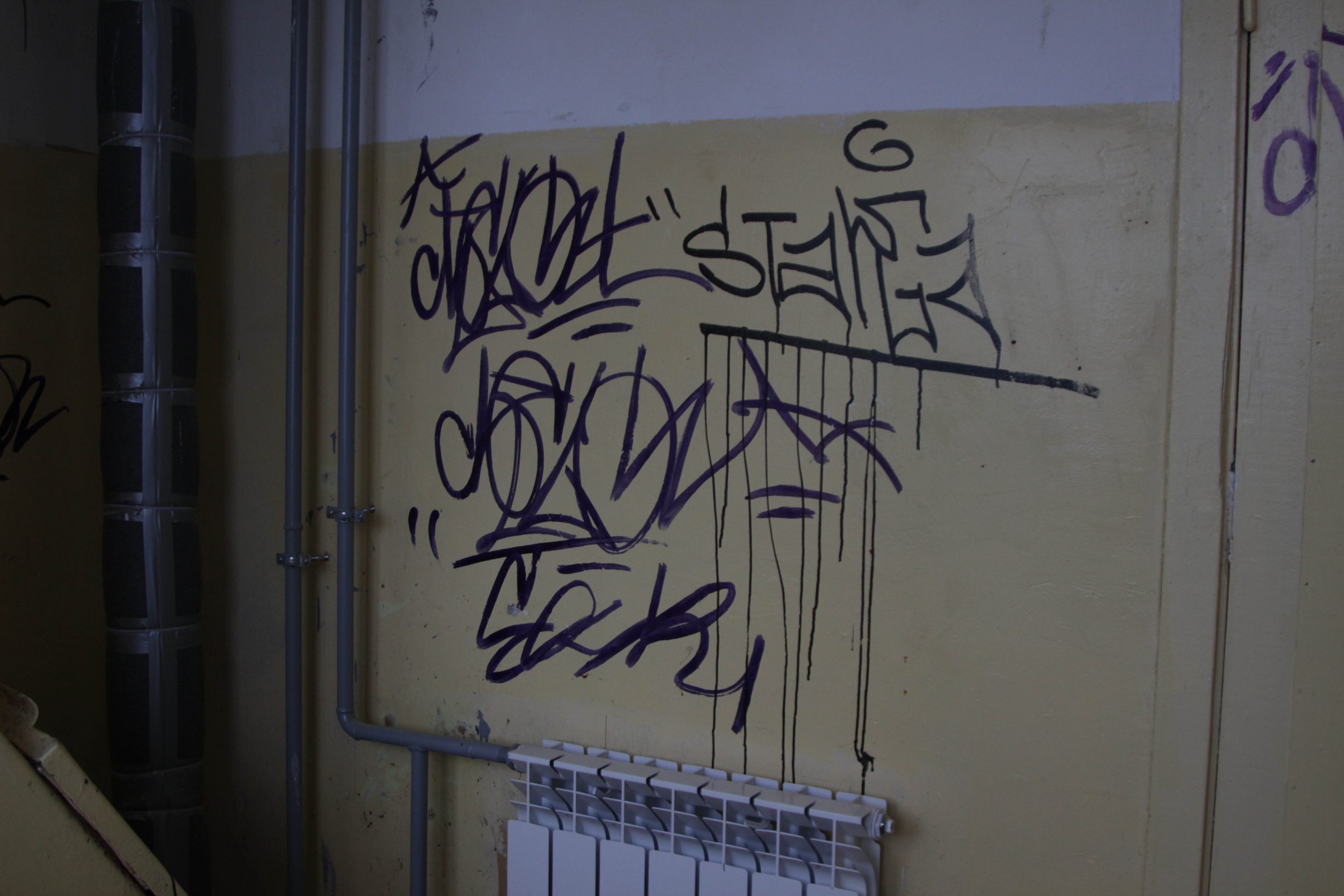 Там буквально только что закончился капитальный ремонт, а на стенах уже появилась ужасная мазня. Если кто-то знает этих вандалов — сообщите. Нам они нужны исключительно в воспитательных целях.