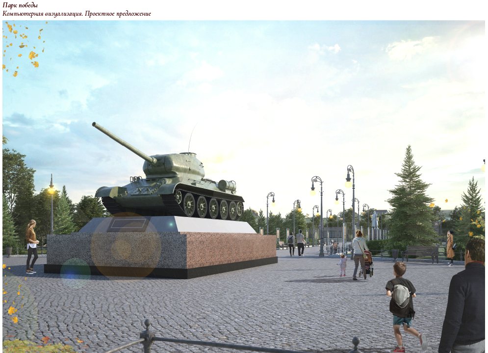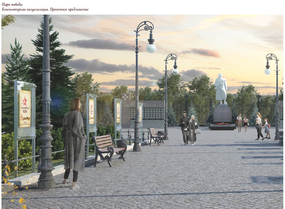 Архитекторами из МАРХИ предполагается, что на территории парка Победы появятся новое мощение, ограда и обелиски. В будущем здесь планируется установить памятник — танк Т-34.