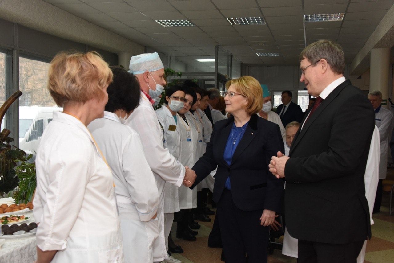 Первой в программе визита была Клиническая больница № 50. Это единственное многопрофильное лечебно-профилактическое учреждение в закрытом административном территориальном образовании. Больница обслуживает 95,5 тысяч человек, многие из них работают в особых условиях труда на предприятиях Госкорпорации «Росатом».