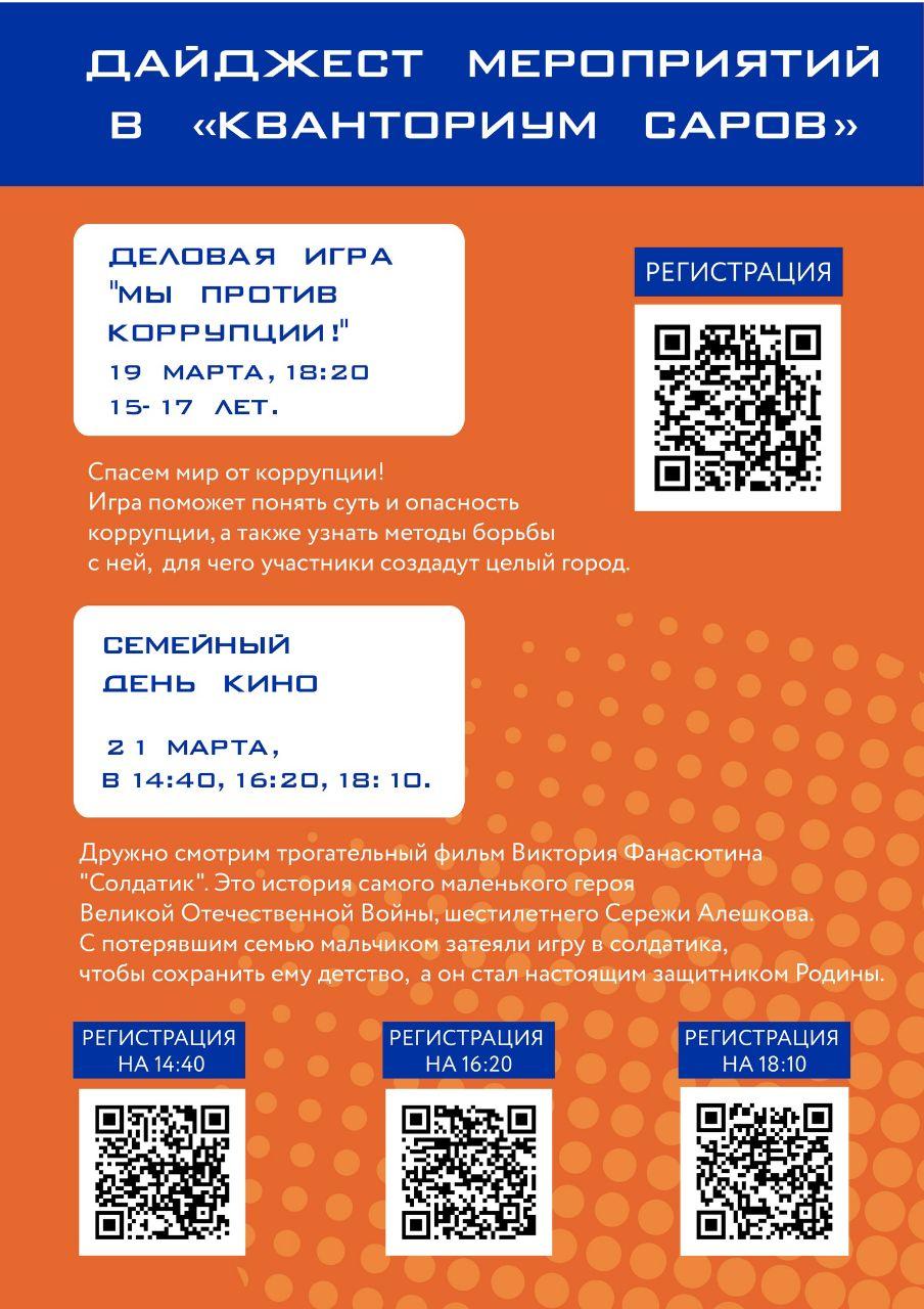 Афиша мероприятий в «Кванториуме Саров» на этой неделе