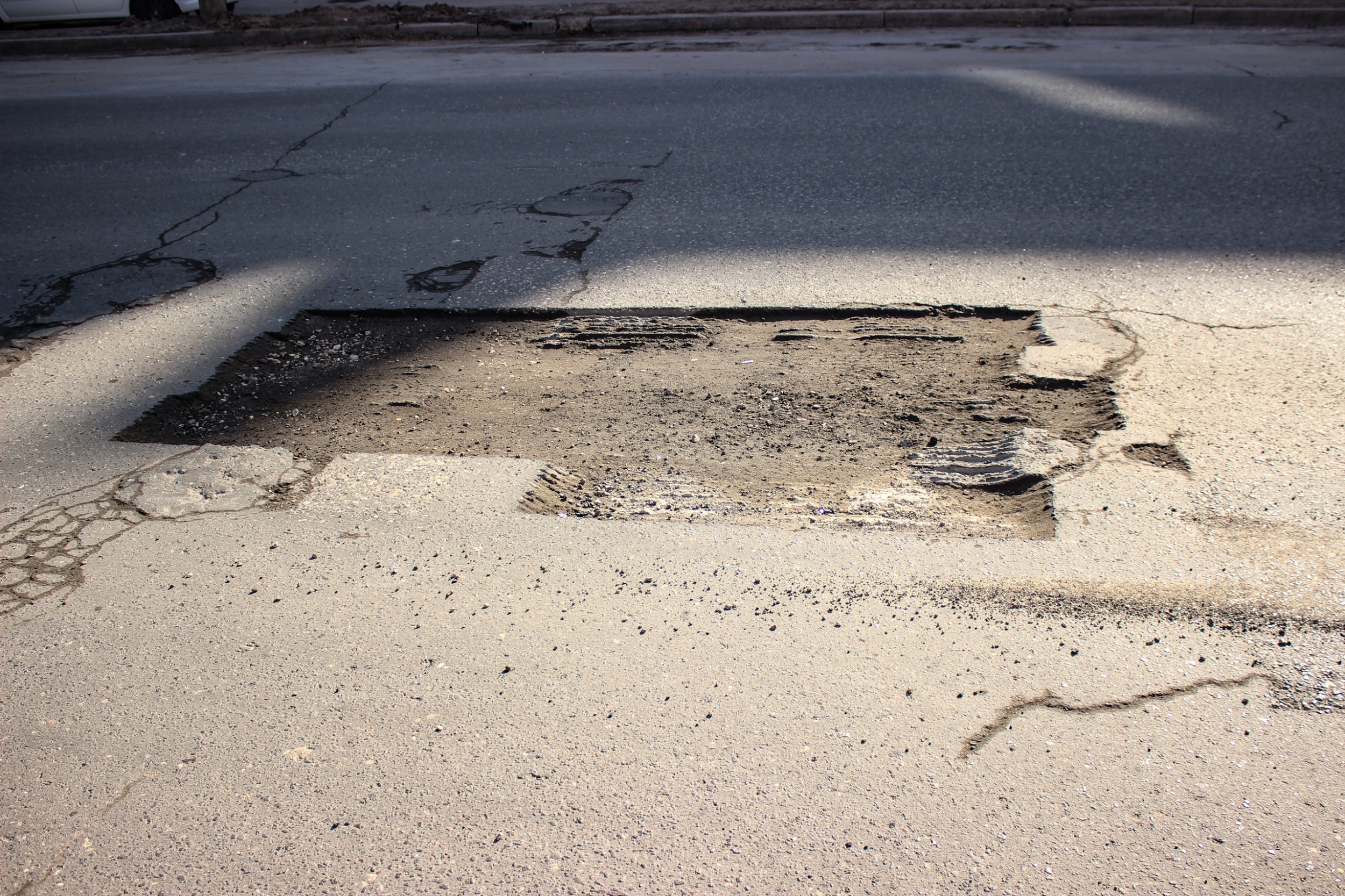 На улице Курчатова асфальтные черви наделали знатных ям в асфальте