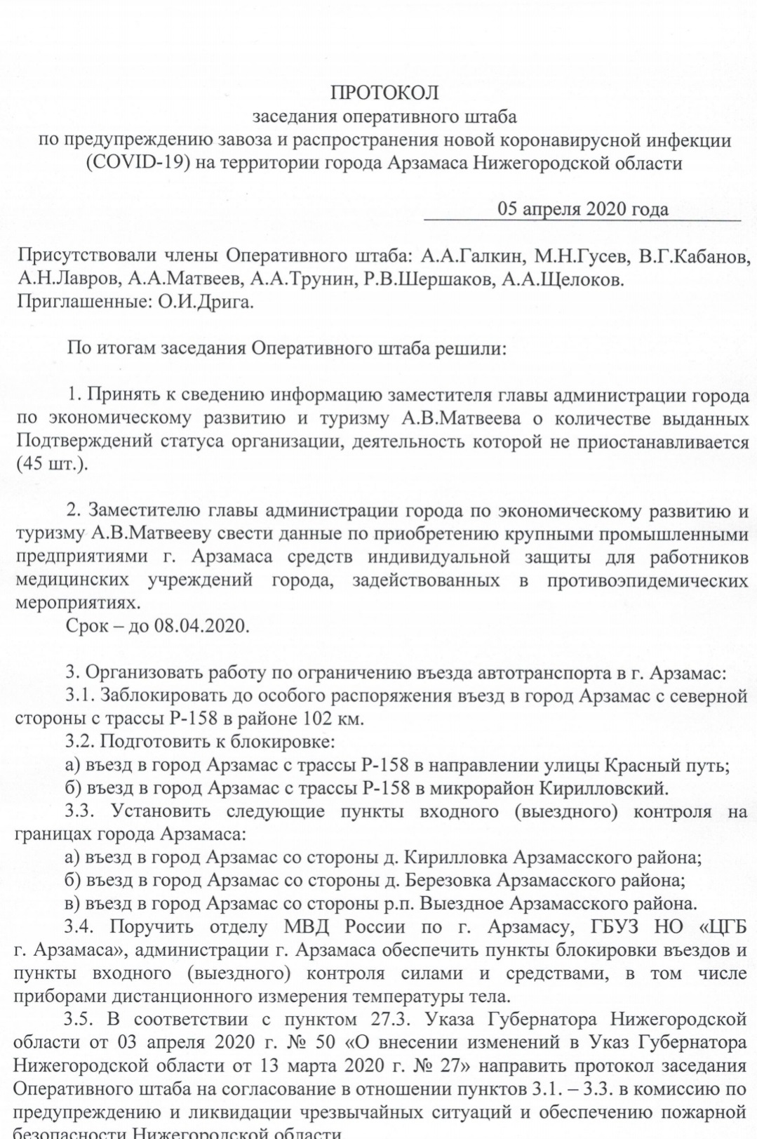 В сети появился Протокол оперативного штаба Арзамаса. Прочитать его содержание можете сами.