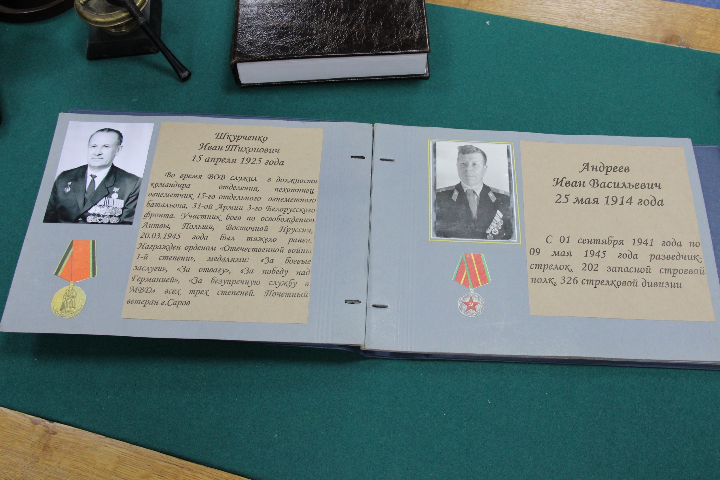 посвящённой сражавшимся за Родину саровским участникам ВОВ, между стендами с фото наших местных ветеранов