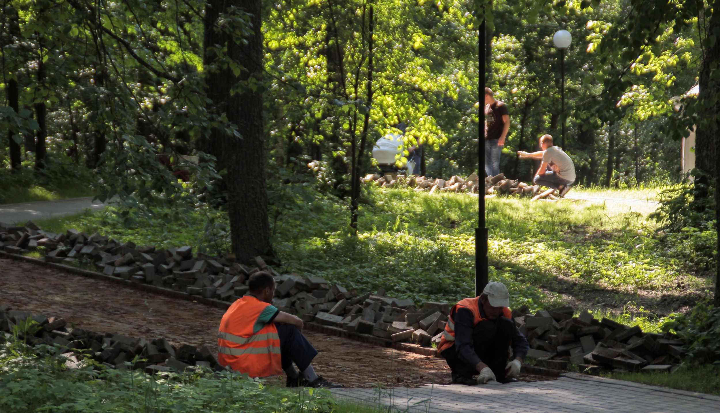 А вот свежие фото из парка им. Зернова. Люди занимаются своими обычными делами, кое-что доделывают и переделывают. В общем, жизнь в парке продолжается.