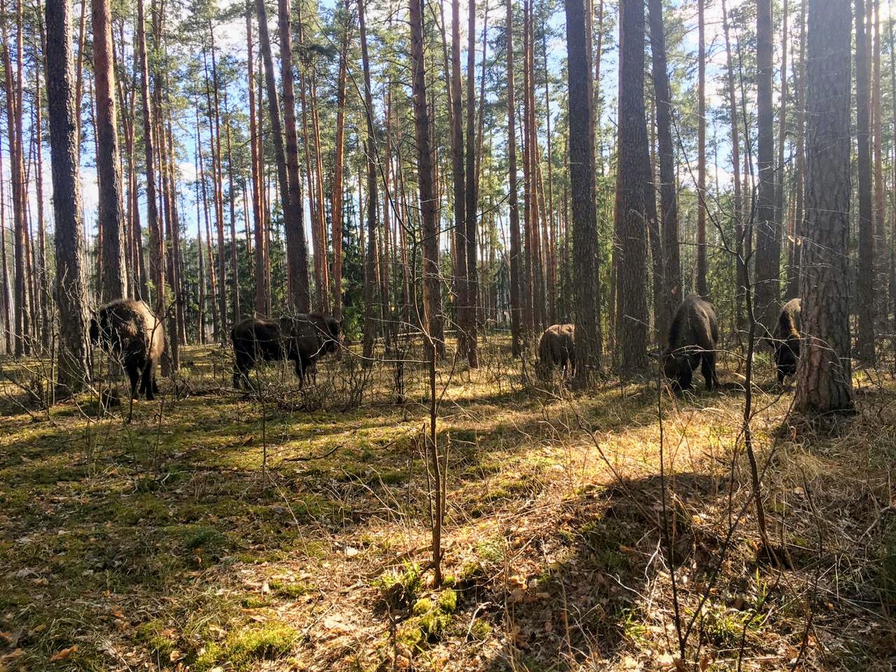 т. е. становятся дикими. Хотя, конечно, назвать так их пока не совсем верно. Но есть шанс, что эти зубры и новые, планируемые к завозу, и последующие поколения станут величественными дикими царствующими животными в наших лесах.По нашим данным стадо разделилось: 7 особей перемещаются по заповеднику и окрестностям, а один крупный самец от стада отделился и осматривает не только окрестности, но и уходит немного дальше. Он может и до капустки добраться.
