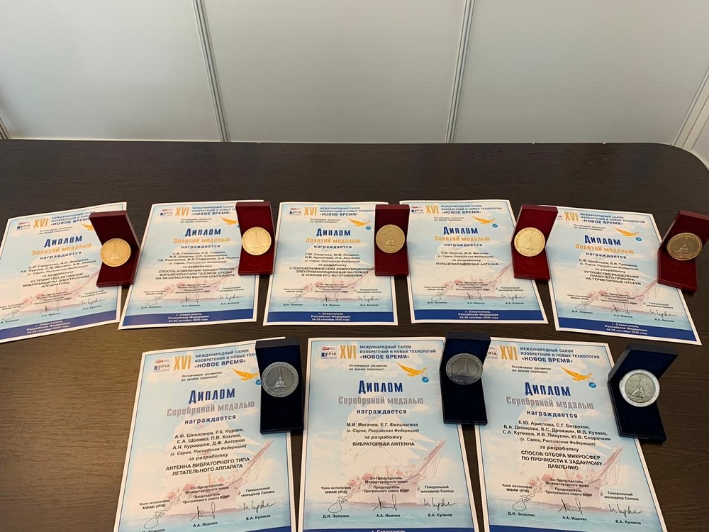 Серебряных медалей и дипломов Салона удостоены: антенна вибраторного типа летательного аппарата; вибраторная антенна; способ отбора микросфер по прочности к заданному давлению.