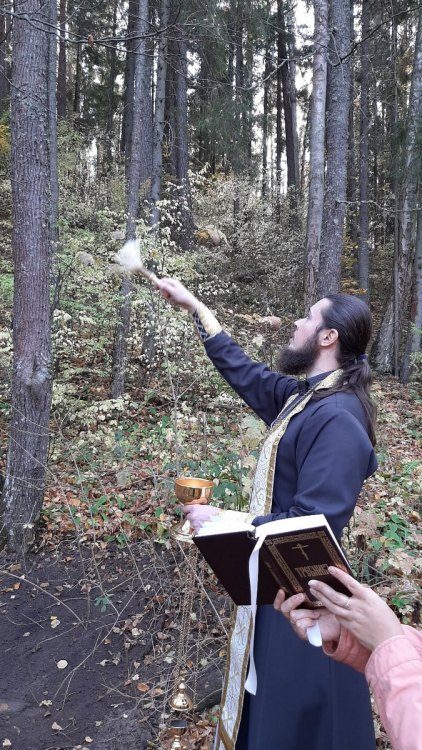 Самой трудоемкой частью работы стало рытье ямы под основание нового креста. Затем крест установили, выровняли и зацементировали основание. В завершение всего иерей Алексий Шестаков освятил новый крест.