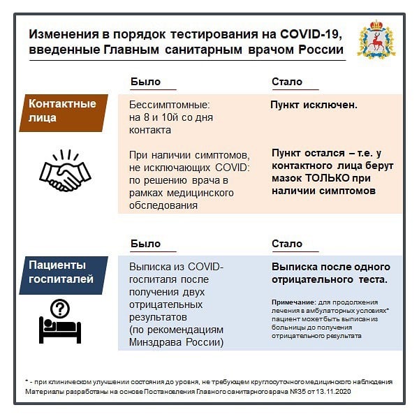 Изменился подход к проведению ПЦР тестирования на COVID-19. Синхронизировались требования Роспотребнадзора и методических рекомендаций Минздрава России. Сроки проведения тестирования на коронавирус должны укладываться в 48 часов.