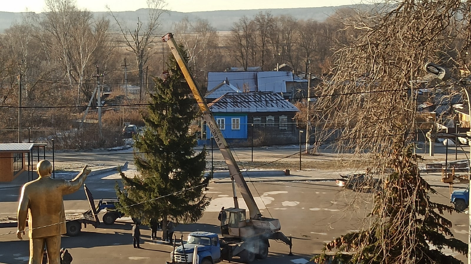А вот в Темникове сегодня настоящую ёлку устанавливали. История дерева интересная: пушистая красавица местная — родом из Темникова с улицы Коммунистической. С одобрения хозяев ёлка была спилена и доставлена на площадь.