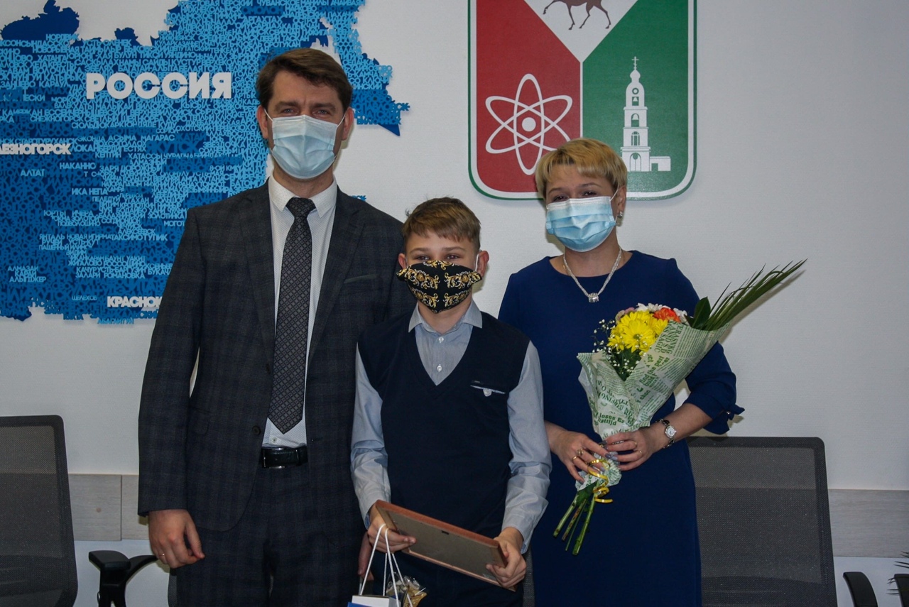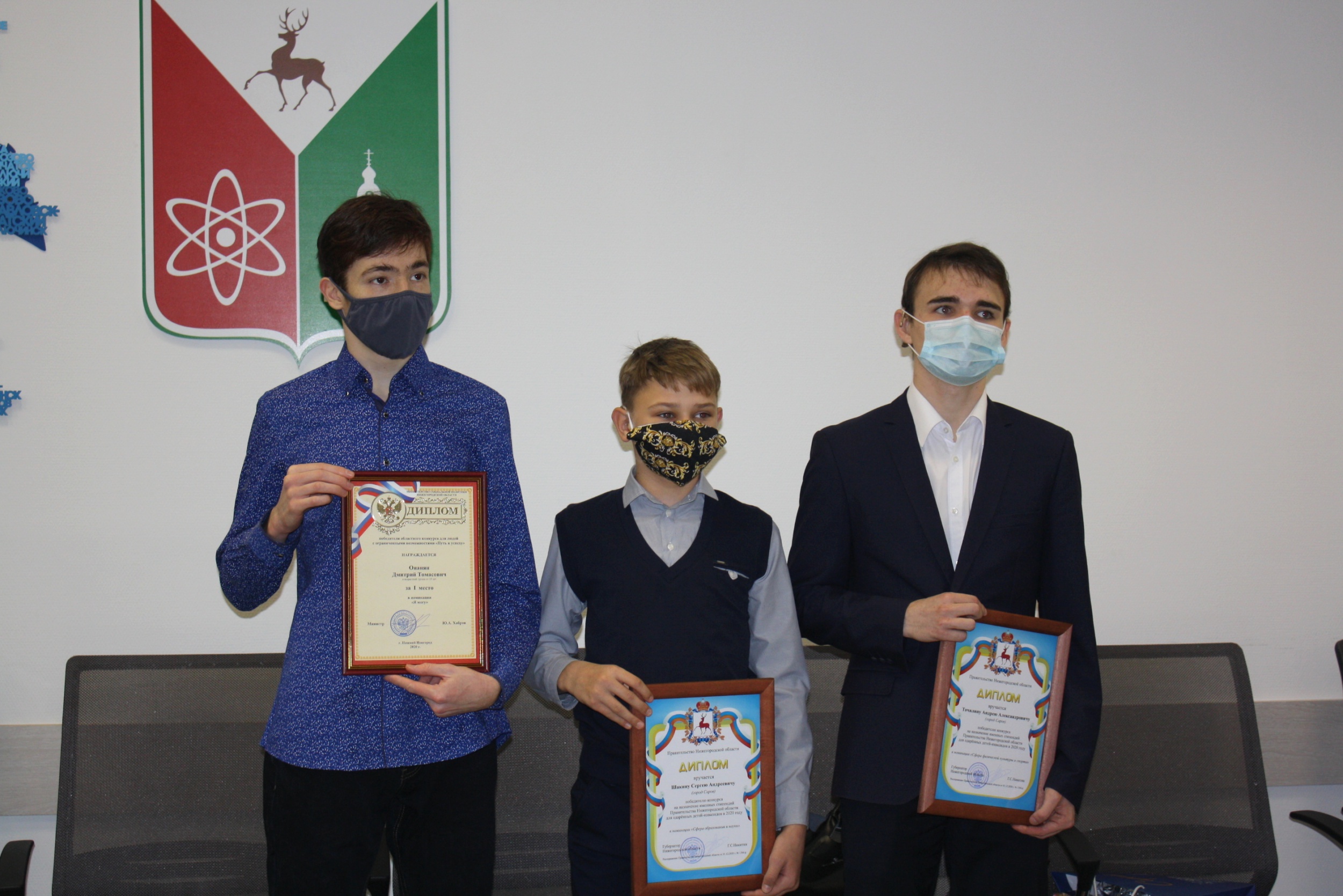 Глава города Алексей Сафонов вручил дипломы правительства Нижегородской области двум юным саровчанам — Андрею Точилину и Сергею Шакину.