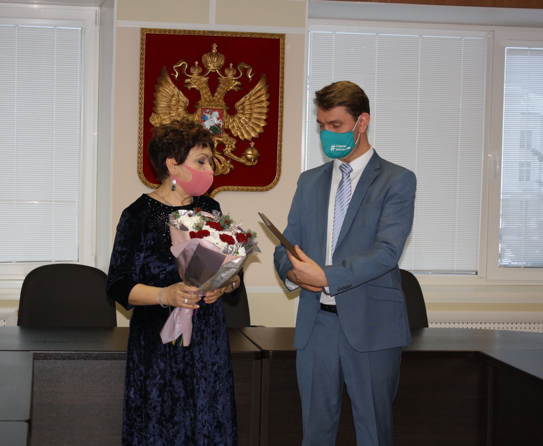 Глава города Алексей Сафонов вручил многолетнему руководителю образцового ансамбля «Горница» Ирине Оськиной почетную грамоту Министерства культуры России за многолетнюю и плодотворную работу на профессиональном поприще.
