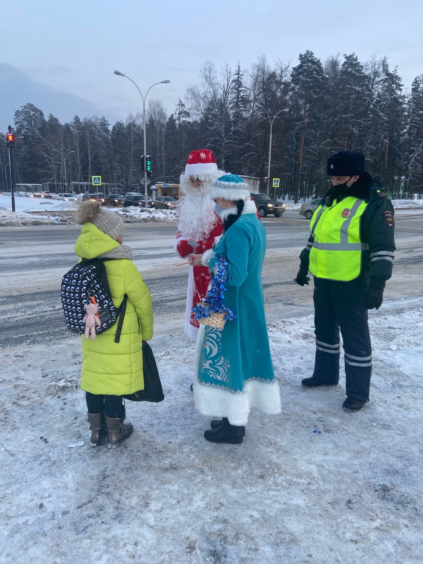 Дед Мороз со Снегурочкой приняли участие в профилактическом рейде «Пешеход на переход»