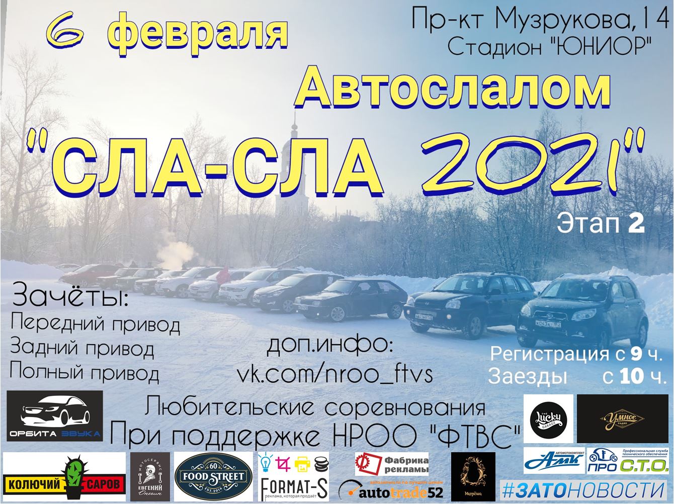В субботу будет много дрифта! 6 февраля на стадионе СК Юниор по пр. Музрукова, 14 состоится второй этап соревнований по любительскому автослалому «СЛА-СЛА 2021»