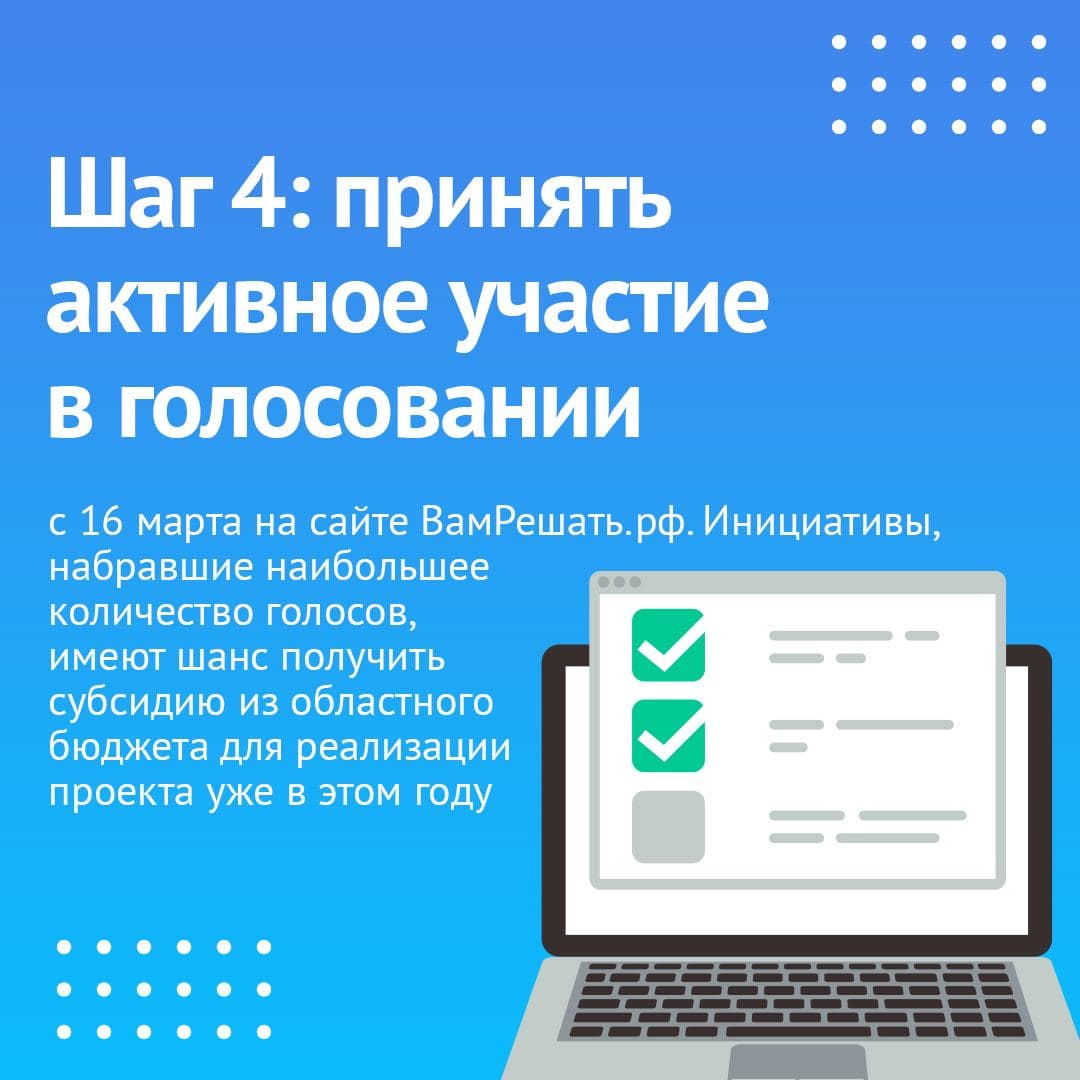 Все проекты, прошедшие конкурсный отбор, с 16 марта появятся на портале вамрешать. рф, за них необходимо проголосовать. Это обеспечит высокую вероятность победы и финансирования данных проектов. Более подробную информацию можно получить по телефонам 9−77−68 или 9−77−97.