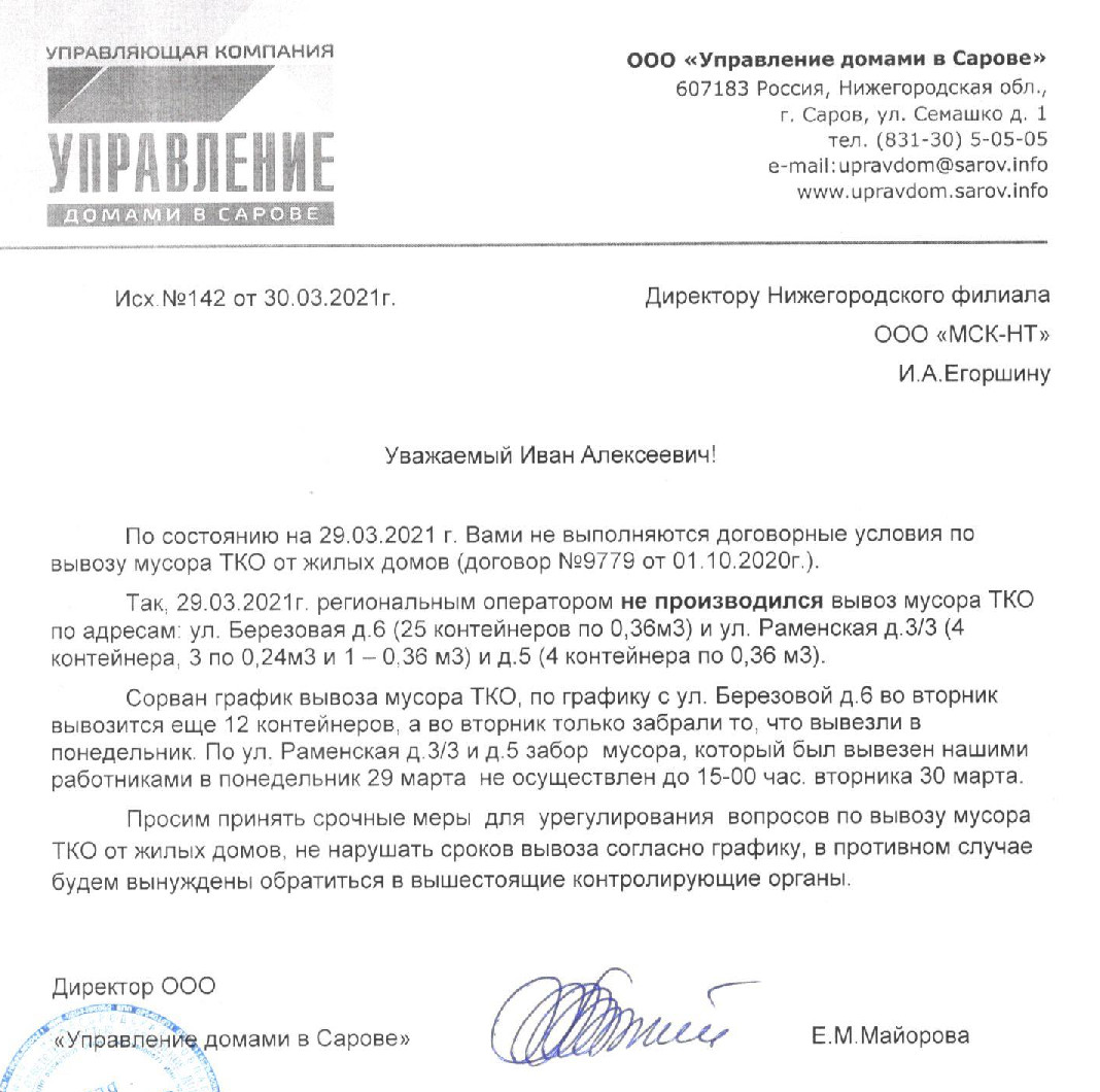 В УК «Управление домами в Сарове» нам сообщили, что свои договорные обязательства по вывозу мусора не выполняет региональный оператор ООО «МСК НТ».