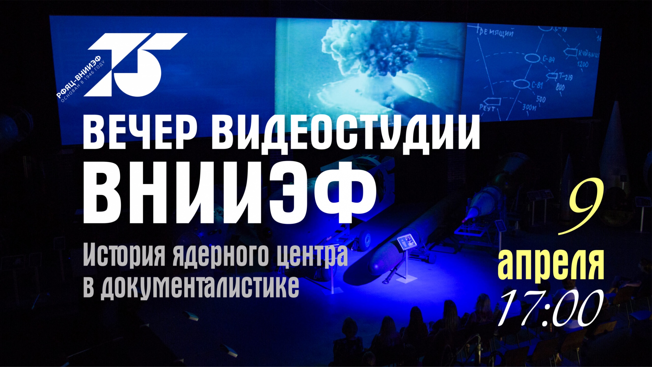 9 апреля в 17:00 в Музее ядерного оружия РФЯЦ-ВНИИЭФ состоится вечер видеостудии ВНИИЭФ, посвящённый 75-летию ядерного центра.