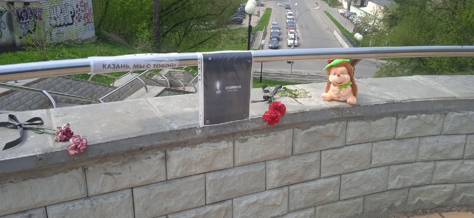 На лестнице «Миру-мир» — импровизированный мемориал жертвам стрельбы в школе Казани (фото)