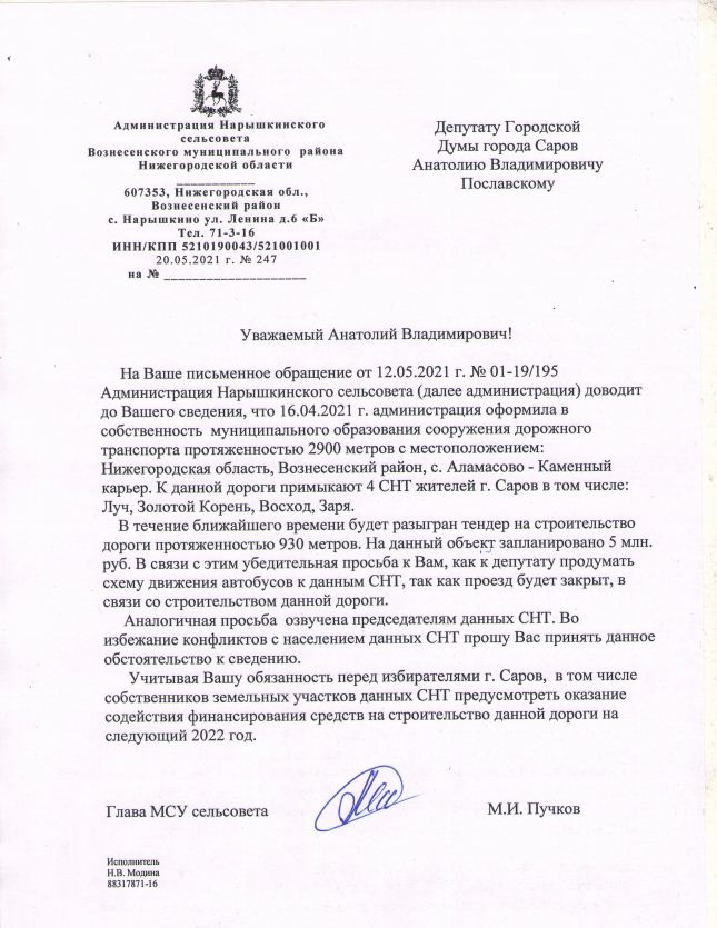 Хорошая новость для жителей города Сарова, чьи сады и огороды расположены в СНТ «Золотой корень», «Луч», «Восход», «Заря».