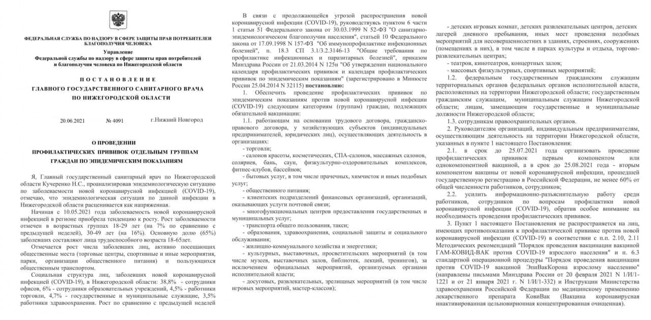 В Нижегородской области до 27 июля привиться (первым компонентом) должны все работники, контактирующие с людьми, госслужащие и правоохранители. Меры вынужденные — мы на 4-м месте по количеству заболевших.