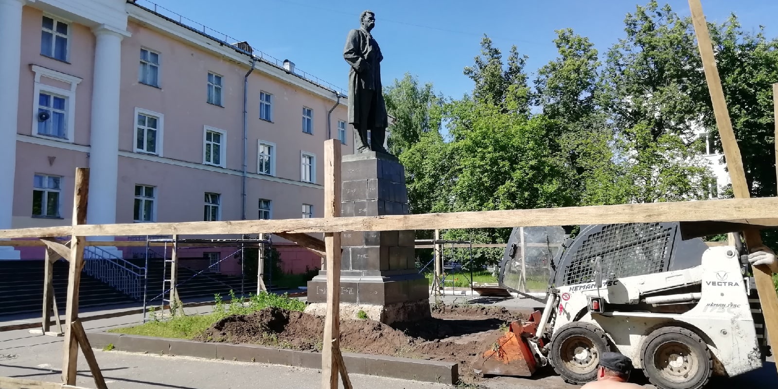 У Дома пионеров начались работы по демонтажу памятника Горькому