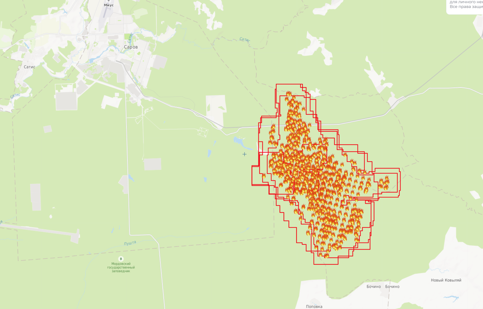 Восточный пожар контролируемо подошёл вплотную к периметру Сарова |