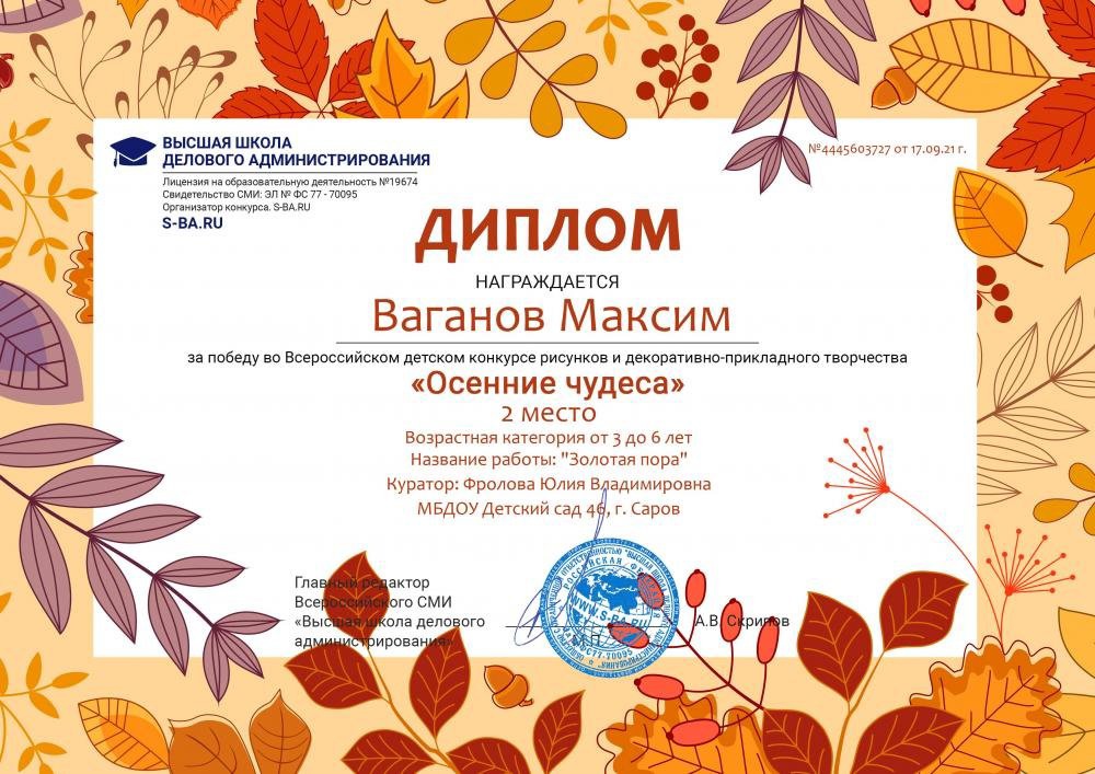 Саровские ребята заняли призовые места на Всероссийском детском конкурсе рисунков и декоративно-прикладного творчества «Осенние чудеса».
