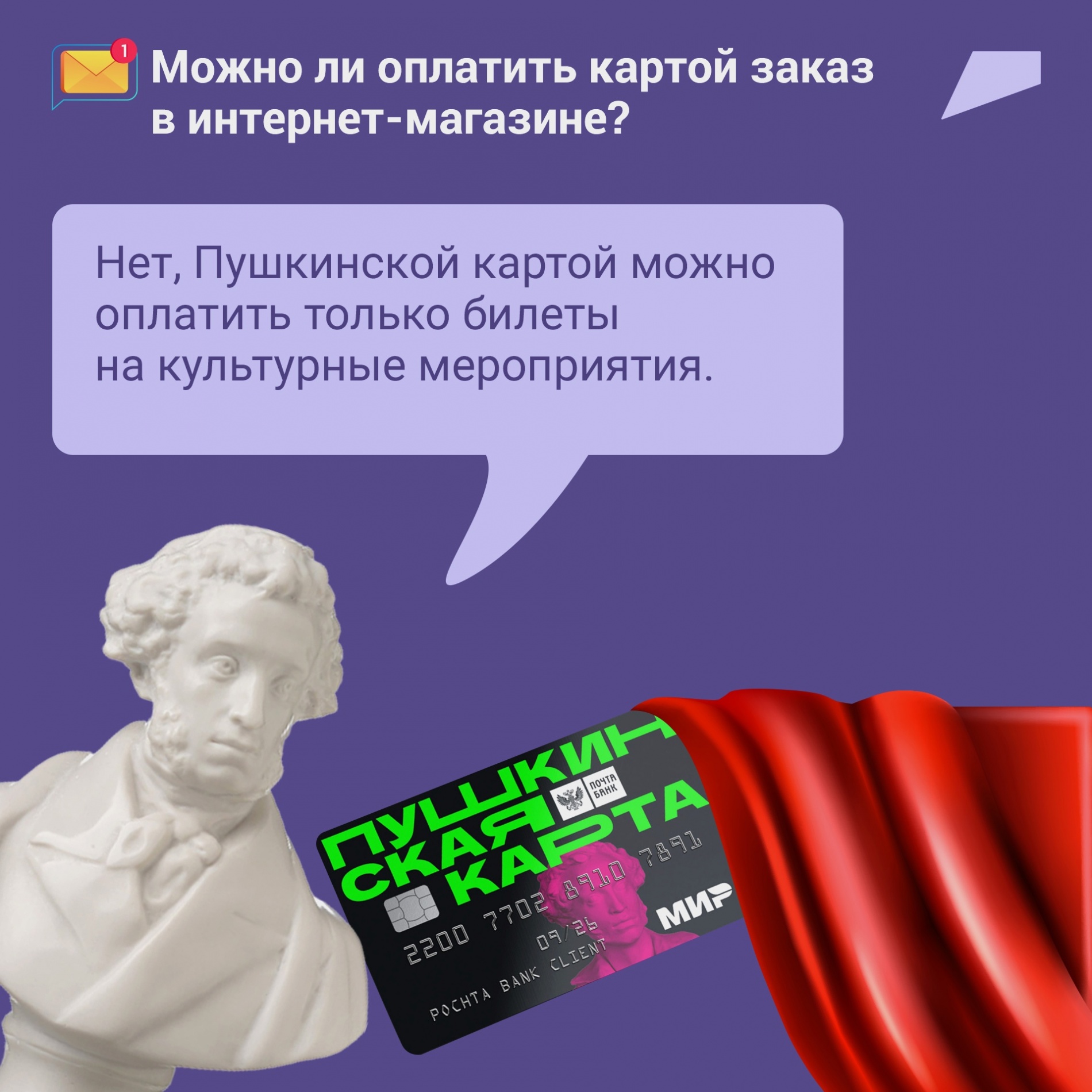 «Пушкинская карта» — совместный проект Минкультуры, Министерства цифрового развития, «Почта Банка», который позволяет молодым людям бесплатно посещать музеи, театры, выставки, филармонии и другие учреждения.